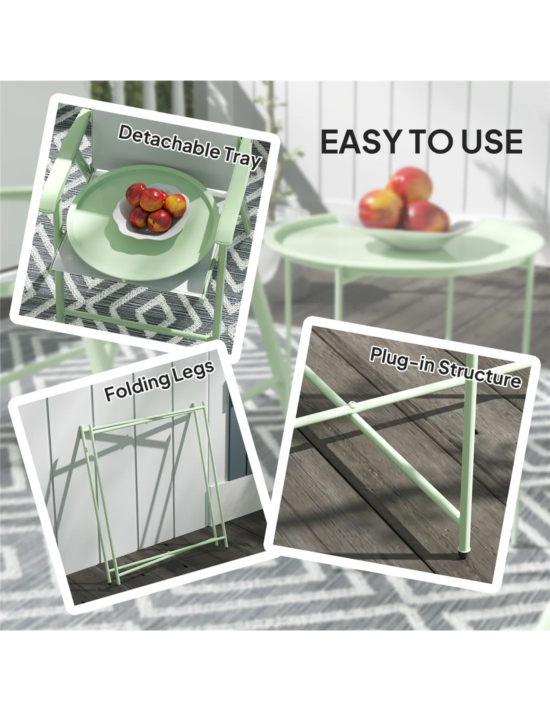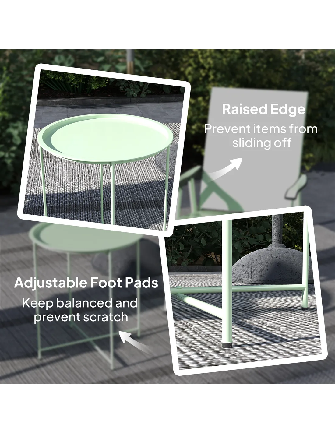 The table supports up to 30 kg, ideal for holding drinks, plants, or garden accessories safely. - Can the tray be used separately from the table?