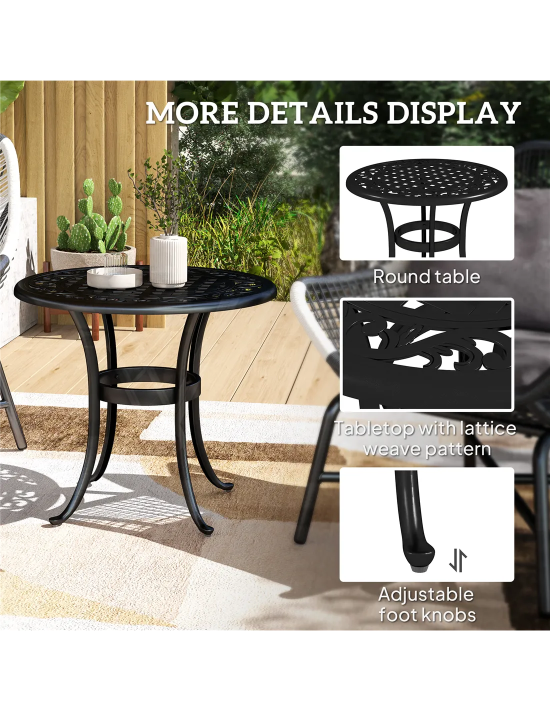 Bring a touch of chic glam into your garden this season: look to this Outsunny outdoor side table. Cast aluminium for a strong and solid structure. Black coloured finish is beautiful, with a pretty cut-out design on the top. Comes with four outward-curved legs for stability.