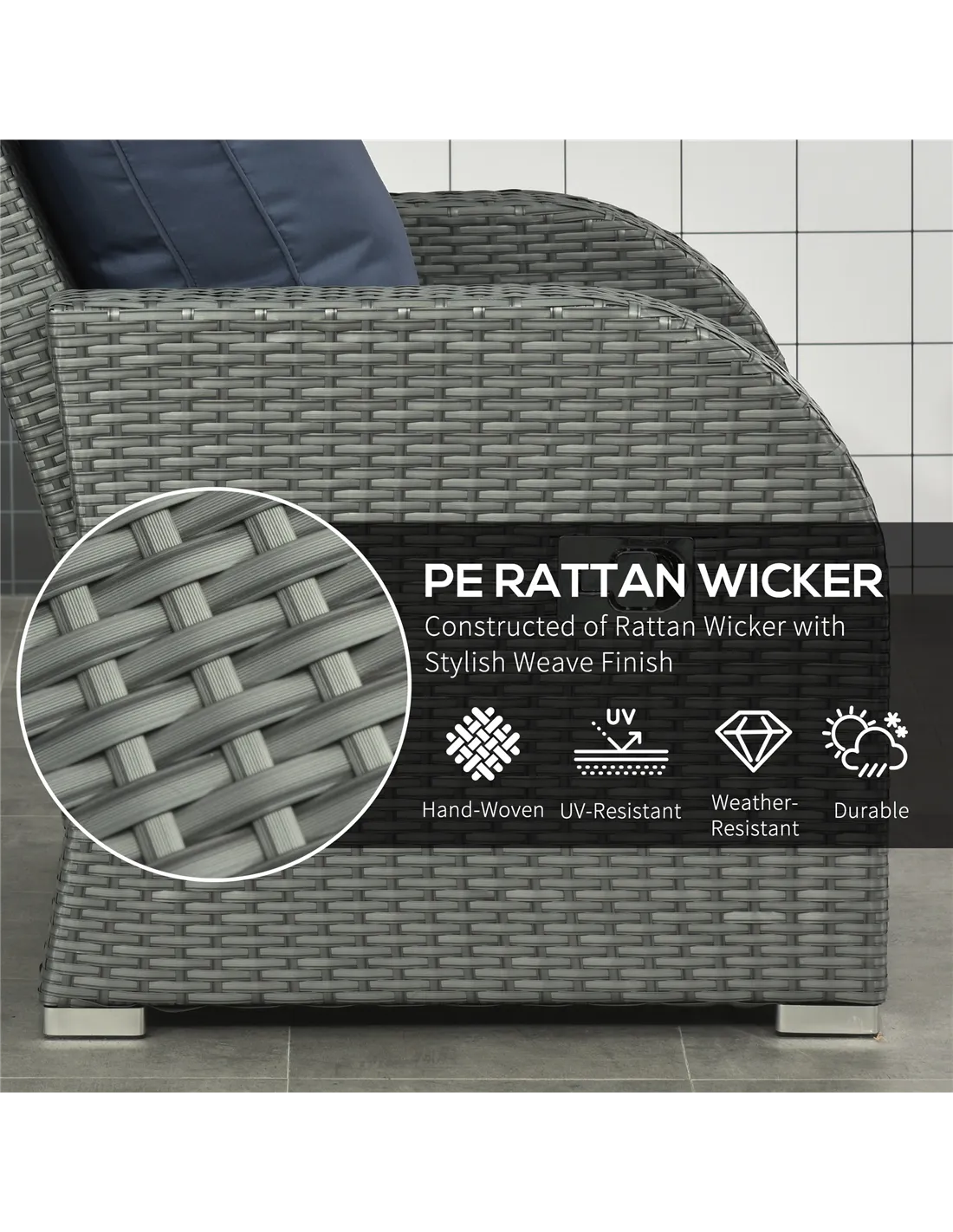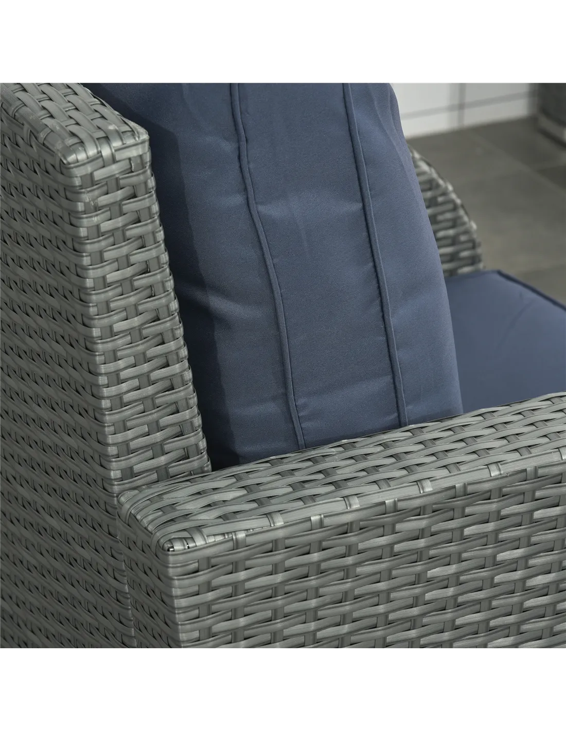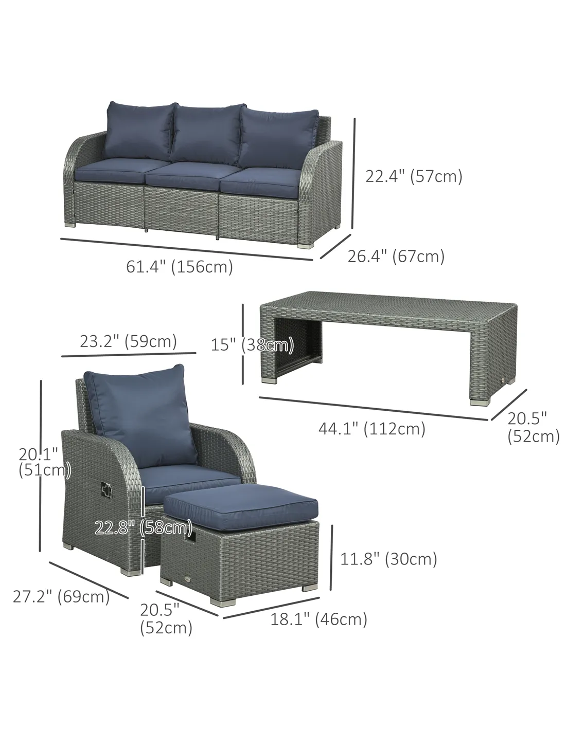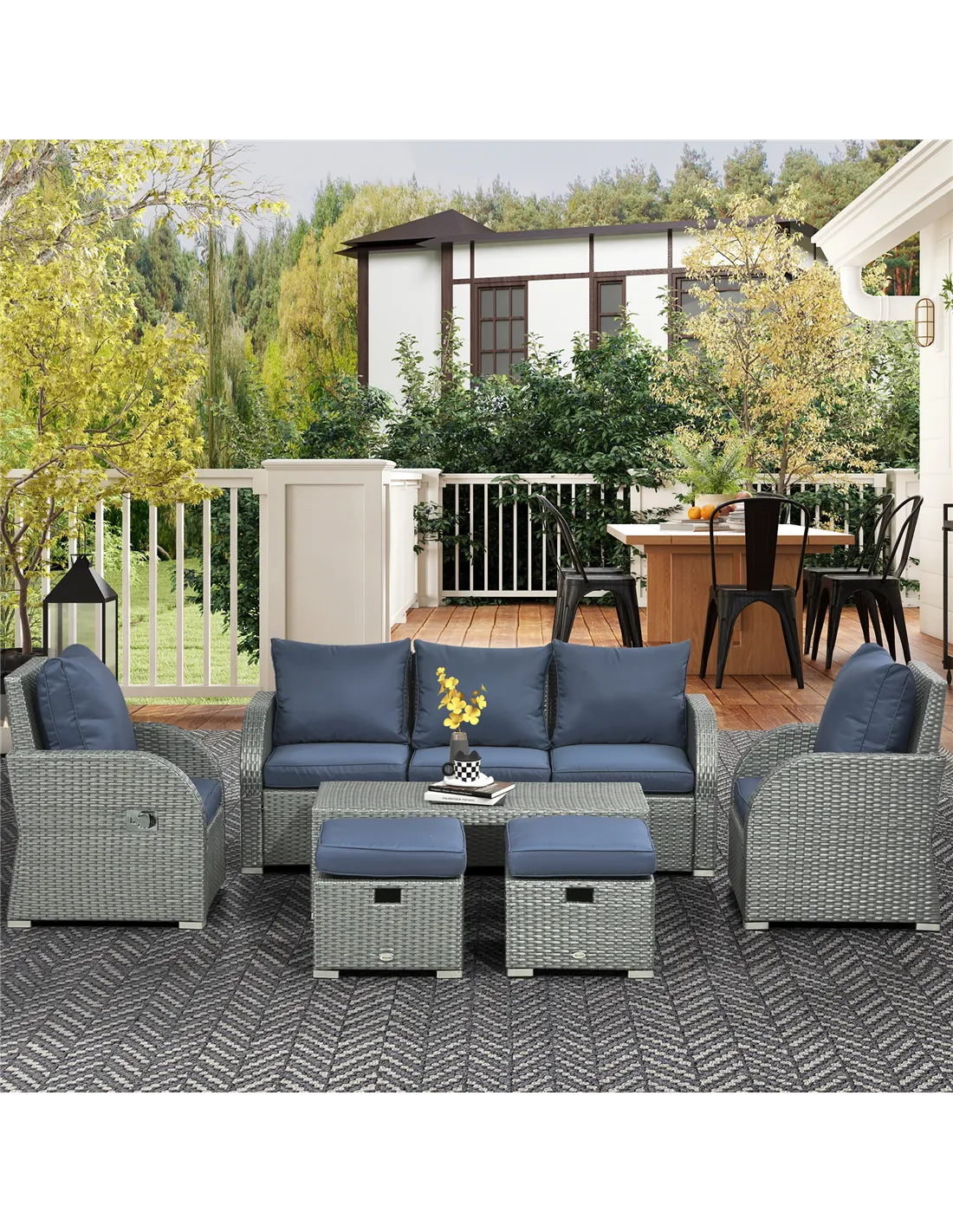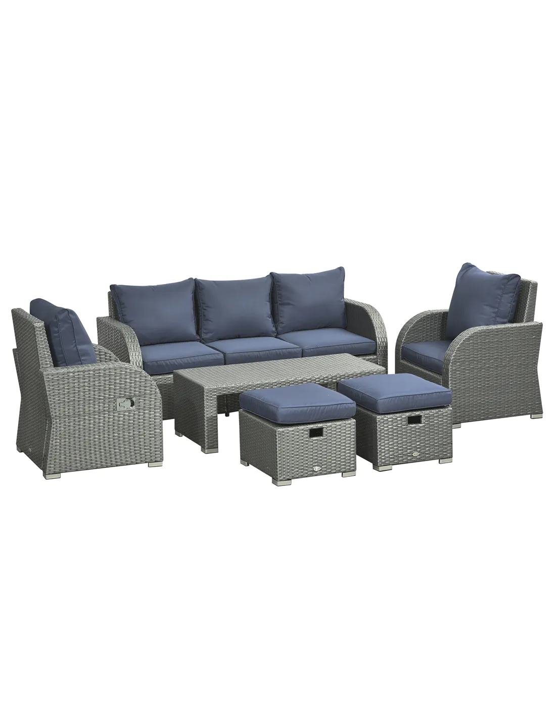 Outsunny Six-piece Outdoor Rattan Dining Set, Outdoor Sofa Set with Reclining Armchairs and Mental Frame, Blue