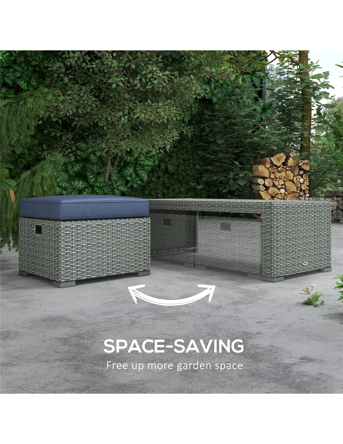 Outsunny six-piece outdoor wicker dining set is designed for the garden enthusiast. Crafted with a robust powder-coated steel frame and elegantly wrapped in weather-resistant plastic wicker, this set promises durability and style. Imagine a serene afternoon where you recline in the adjustable armchairs, enveloped in plush cushions, as your garden transforms into a haven of comfort. It can be effortlessly rearranged to accommodate gatherings.
