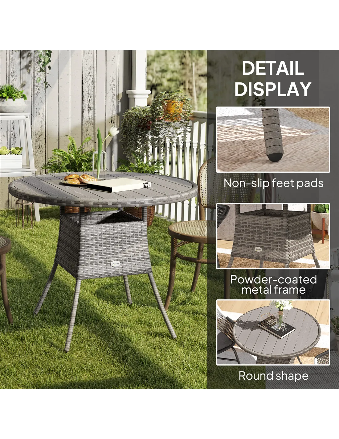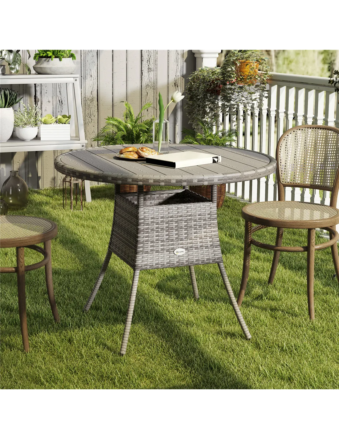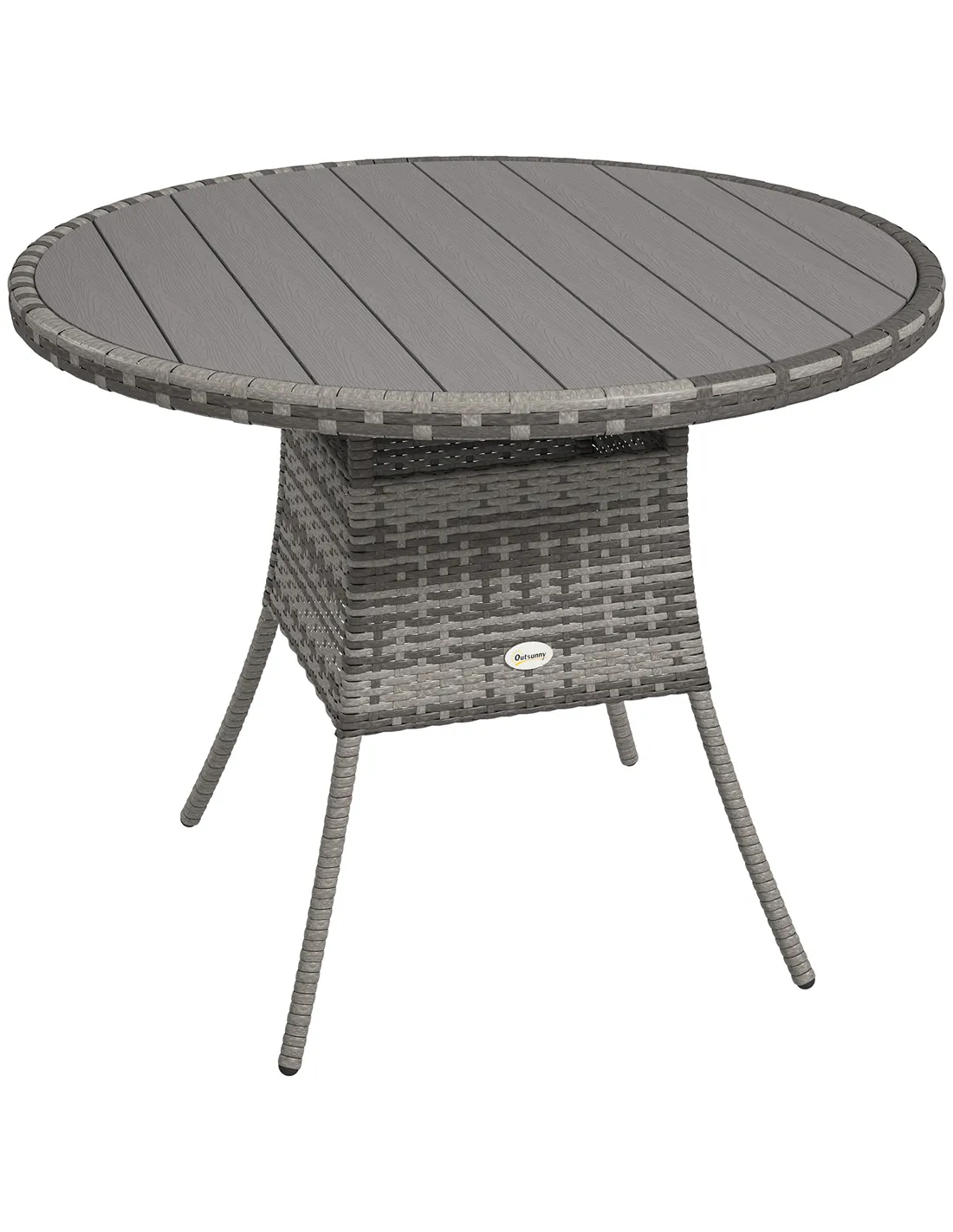 Outsunny 90cm Four-Person Wood-Effect Rattan Table - Grey