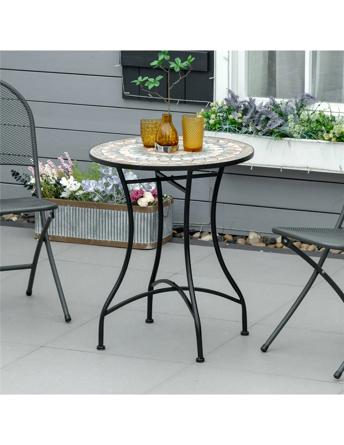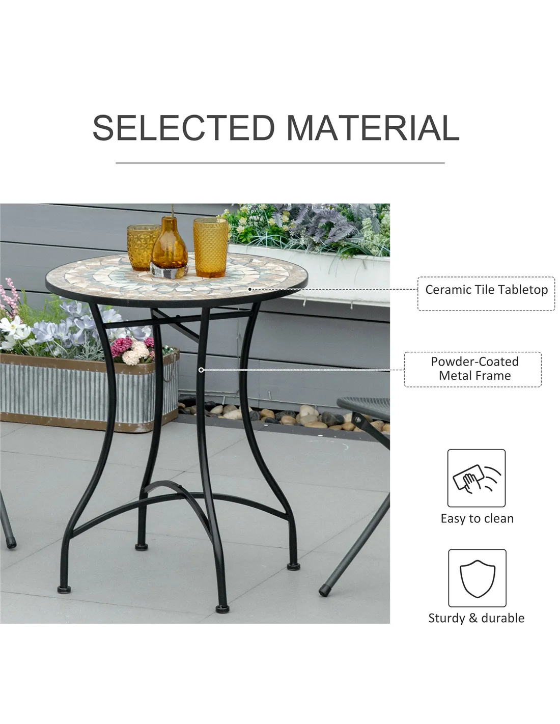 For a unique addition to your garden set-up and beyond, choose this Outsunny mosaic side table. A powder coated metal frame means it's tough and suitable for outdoor use; fitted with a colourful ceramic mosaic tabletop for plenty of character - whether as a garden patio table, indoor side table or as a plant stand.