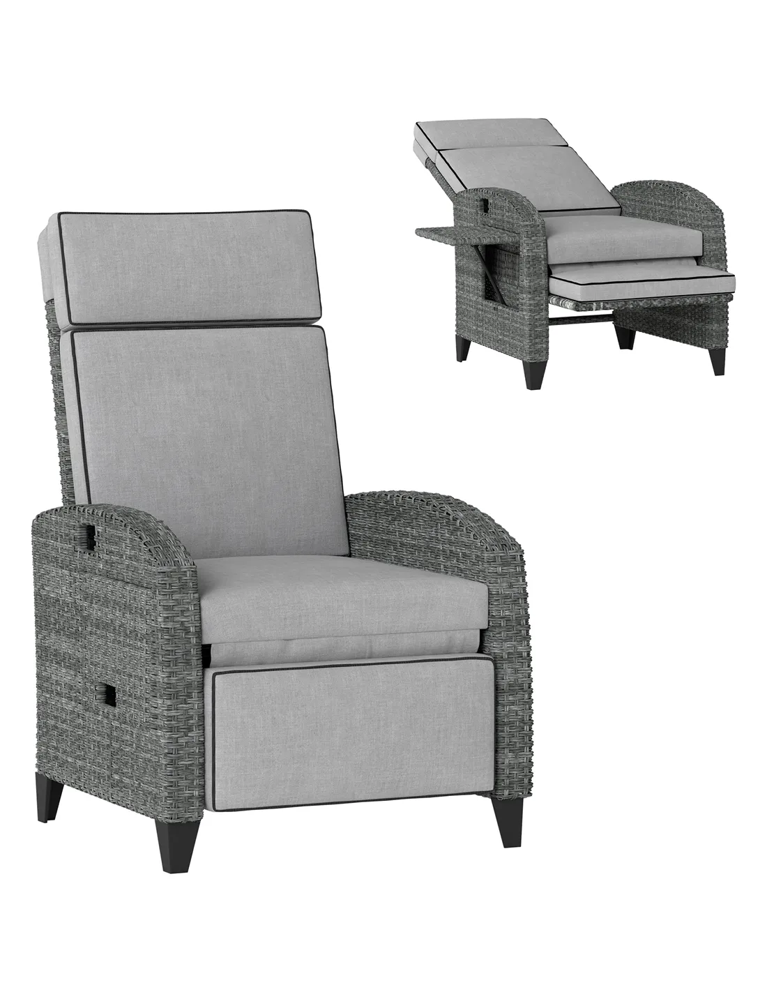 Outsunny Outdoor Recliner Chair with Adjustable Backrest and Footrest, Cushion, Side Tray, Light Grey/Grey
