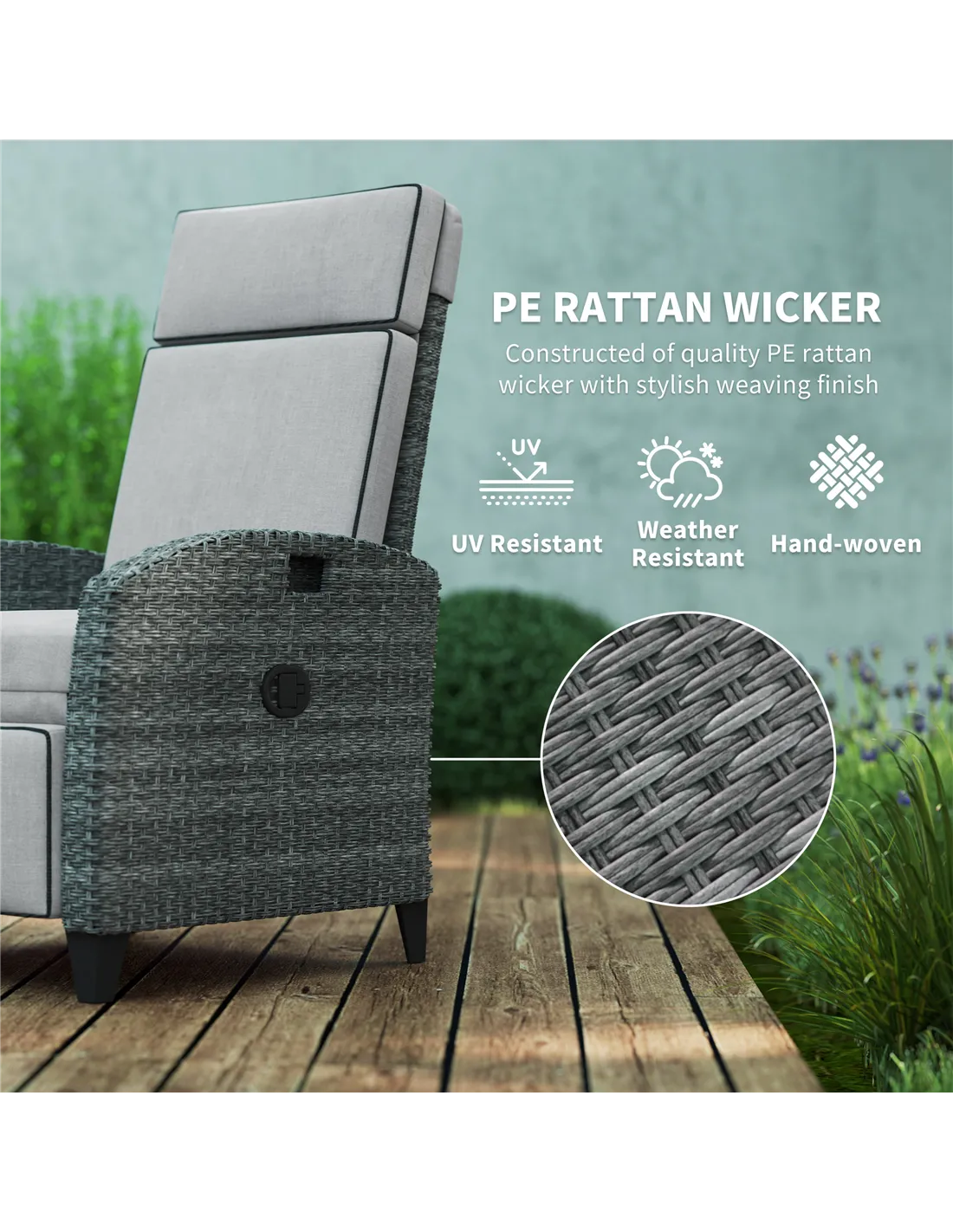 - Perfect for relaxing in your garden or on the patio, this recliner offers adjustable comfort whether you want to sit upright or recline fully for a restful afternoon.