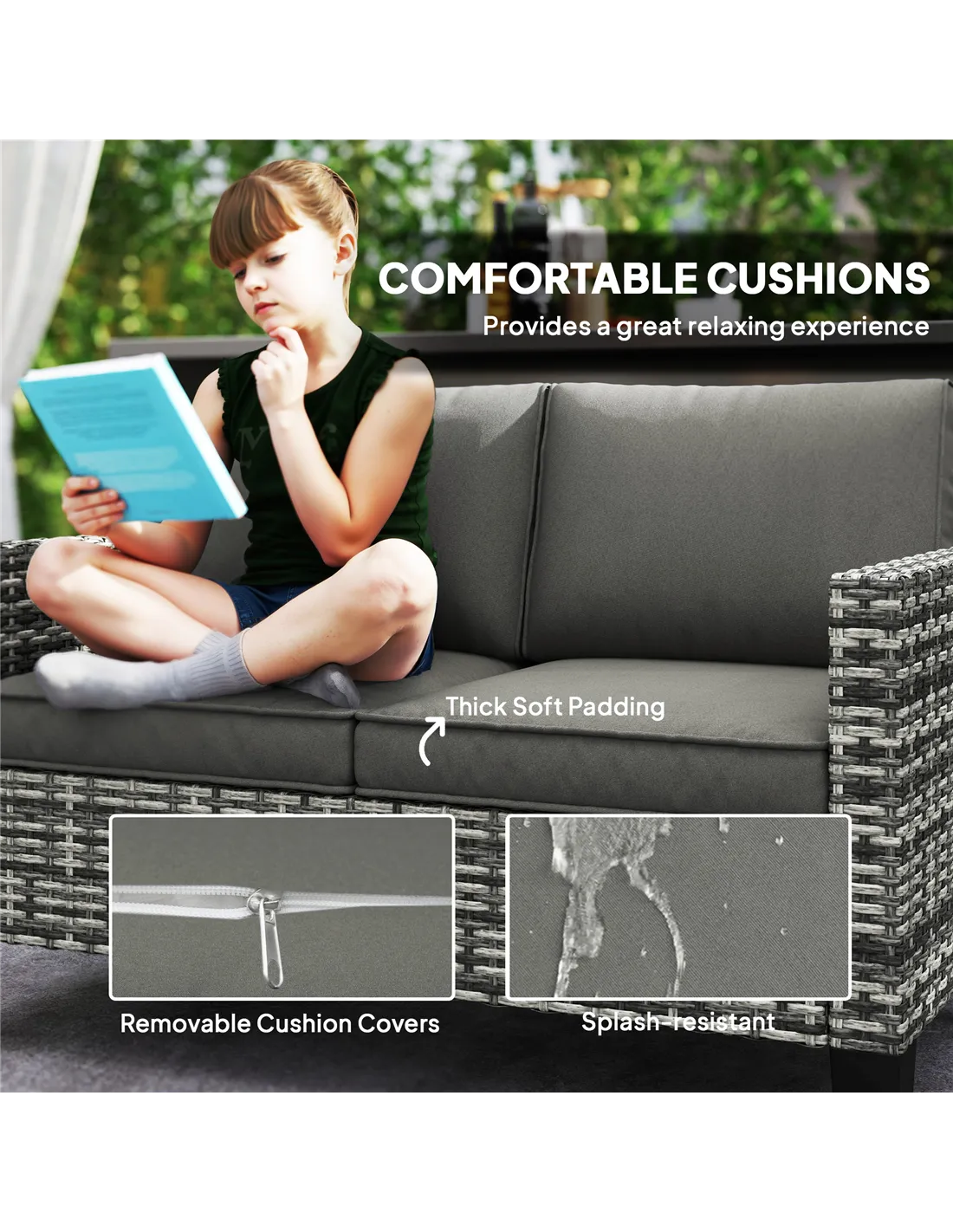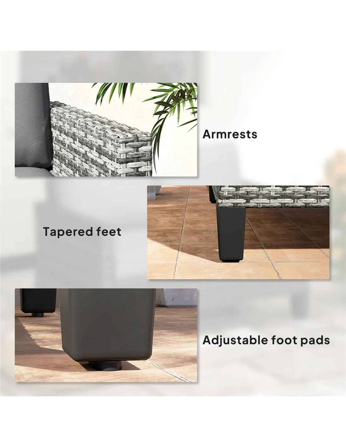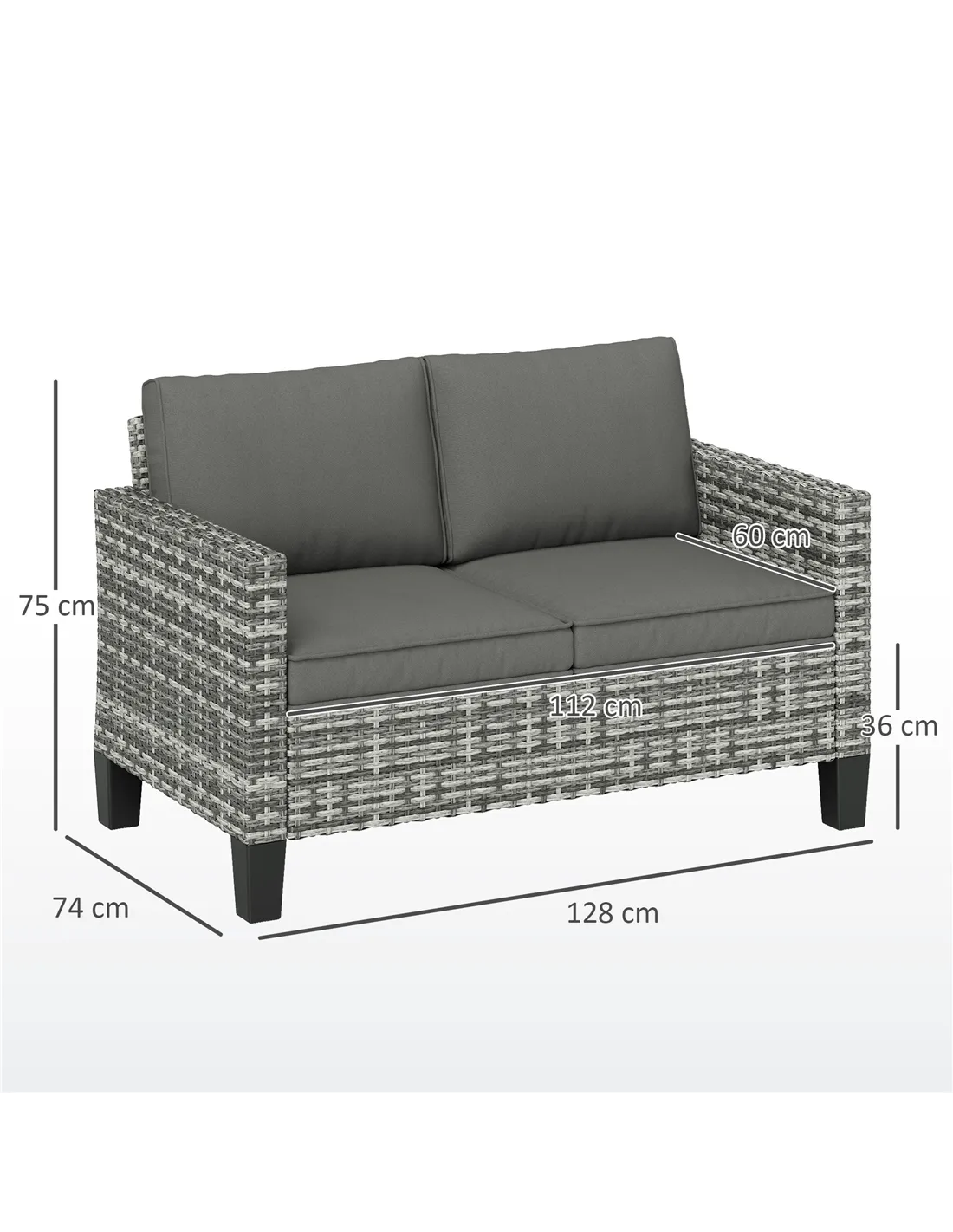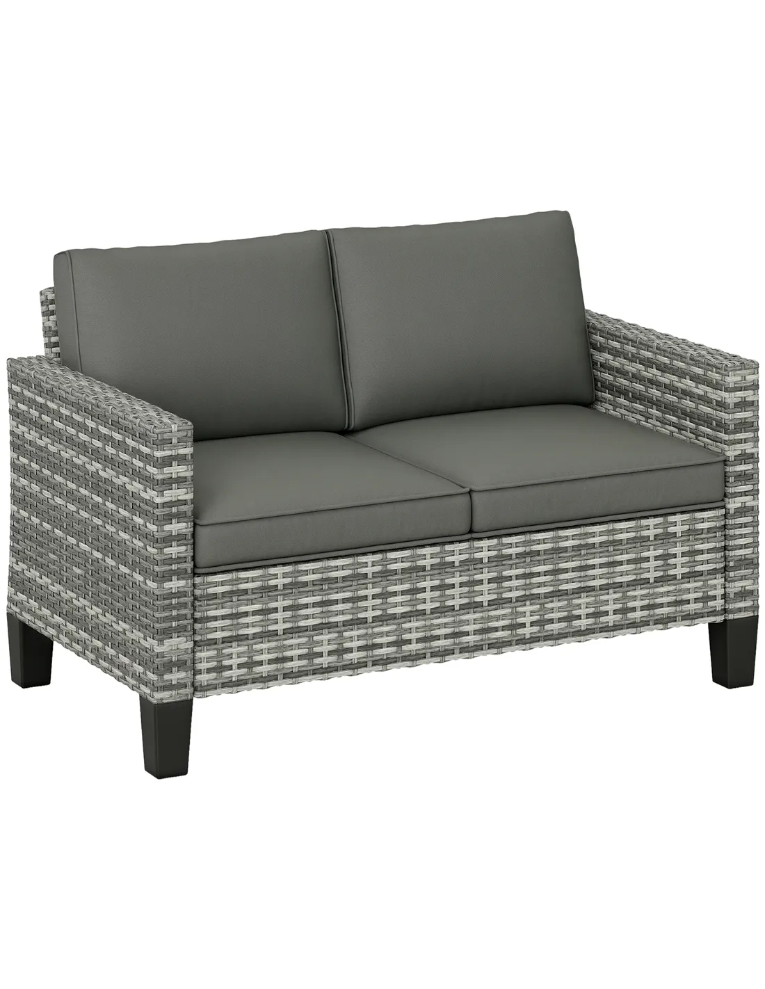 Outdoors times with company, made comfortable with this Outsunny outdoor loveseat. A galvanised steel frame with powder coating means a strong core, wrapped in tough plastic wicker for a protective outer. Thick cushions ensure comfort; patio sofa is complete with adjustable feet so it stands steady and balanced.