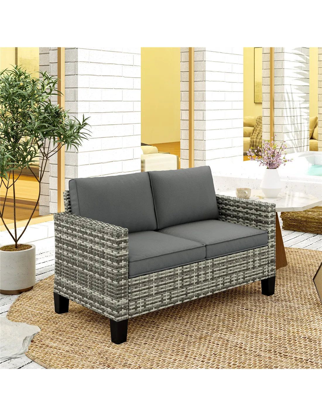 Outsunny Two-Seater Rattan Outdoor Sofa - Light Grey