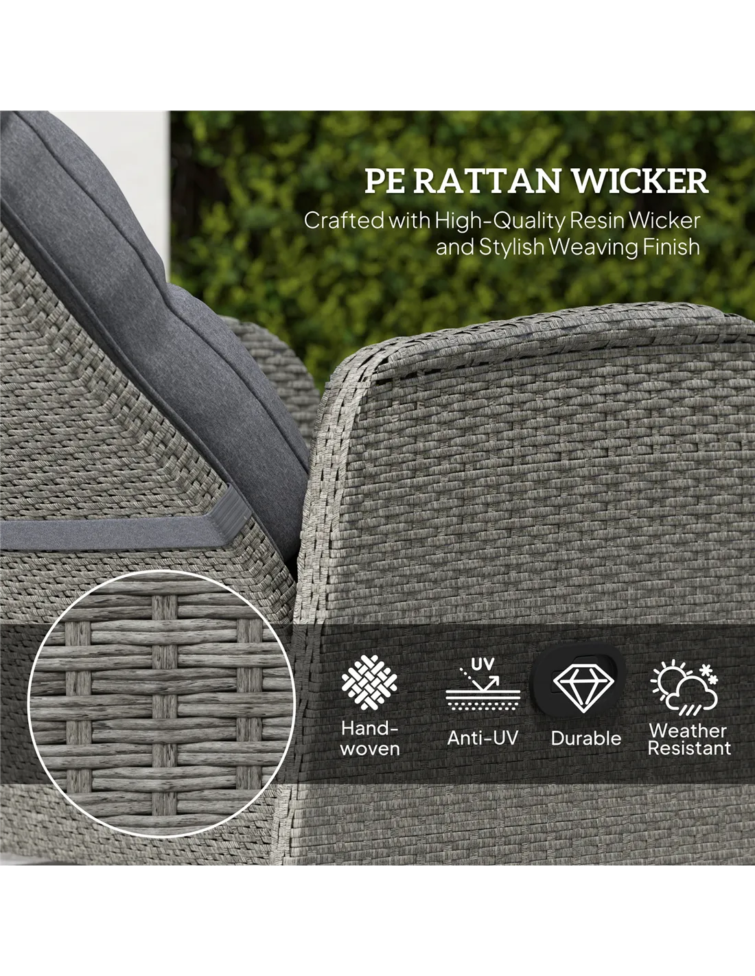Outsunny 2 Seater Patio Rattan Wicker Chaise Lounge Sofa Set w/ Cushion for Patio Garden Porch, Grey
