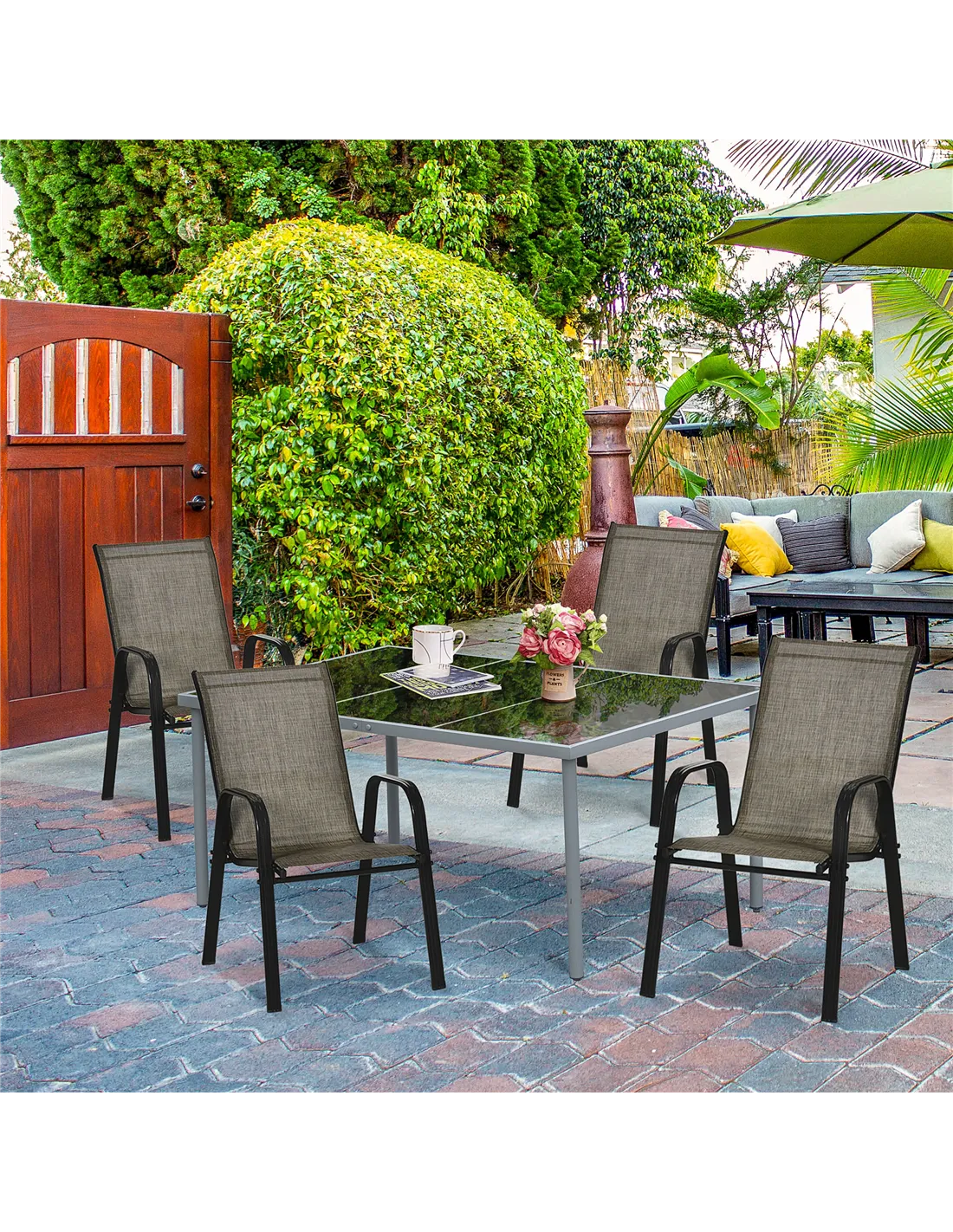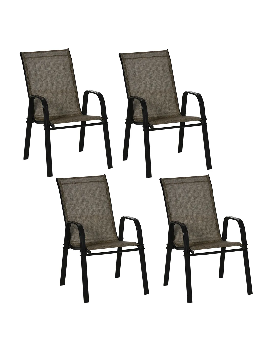 Sit outdoors with friends, thanks this Outsunny set of four stackable gardens. The high back and armrests support your body. The breathable mesh fabric is comfortable. The stackable design makes it compact for easy storage. A set to bring your favourite people together outdoors.