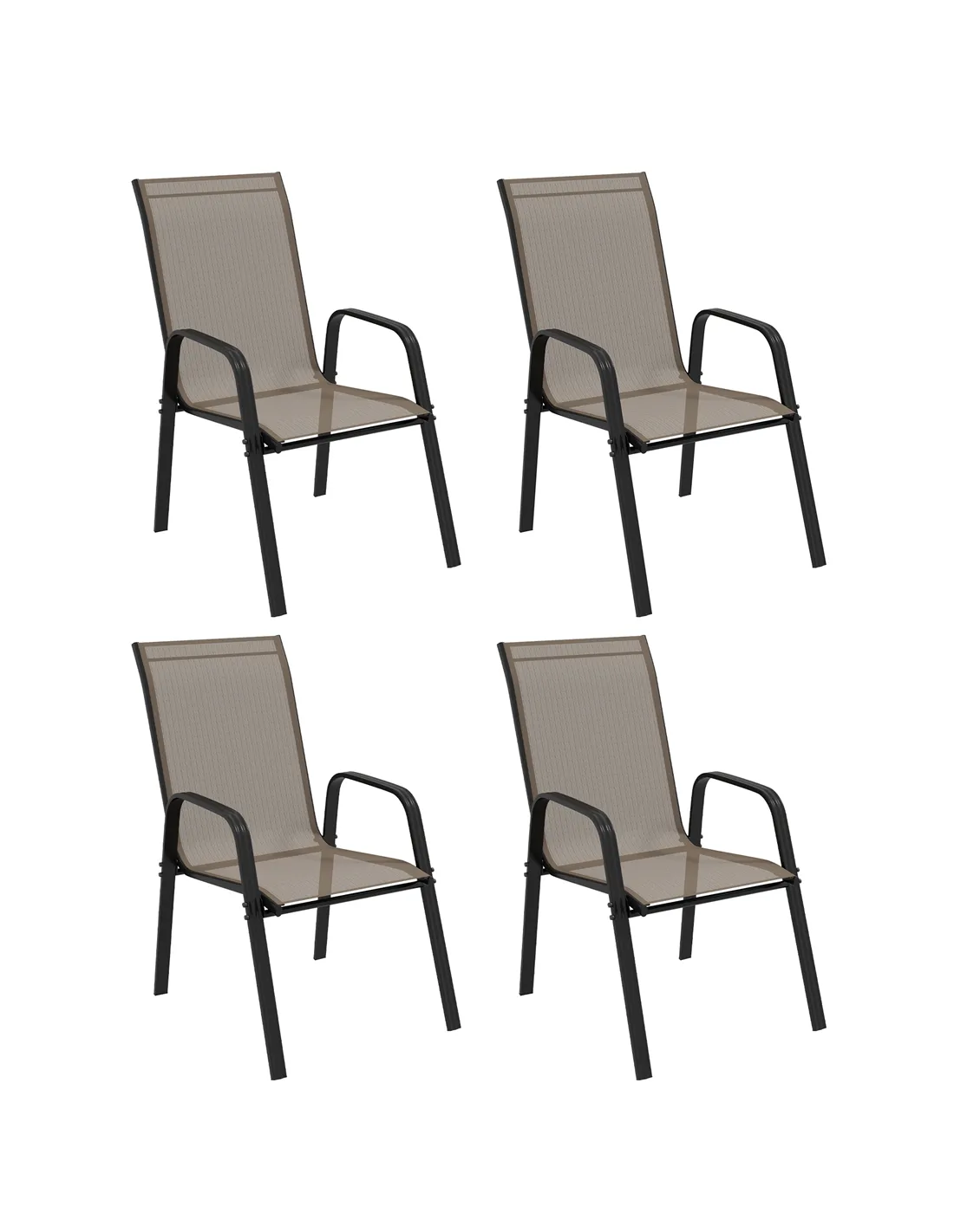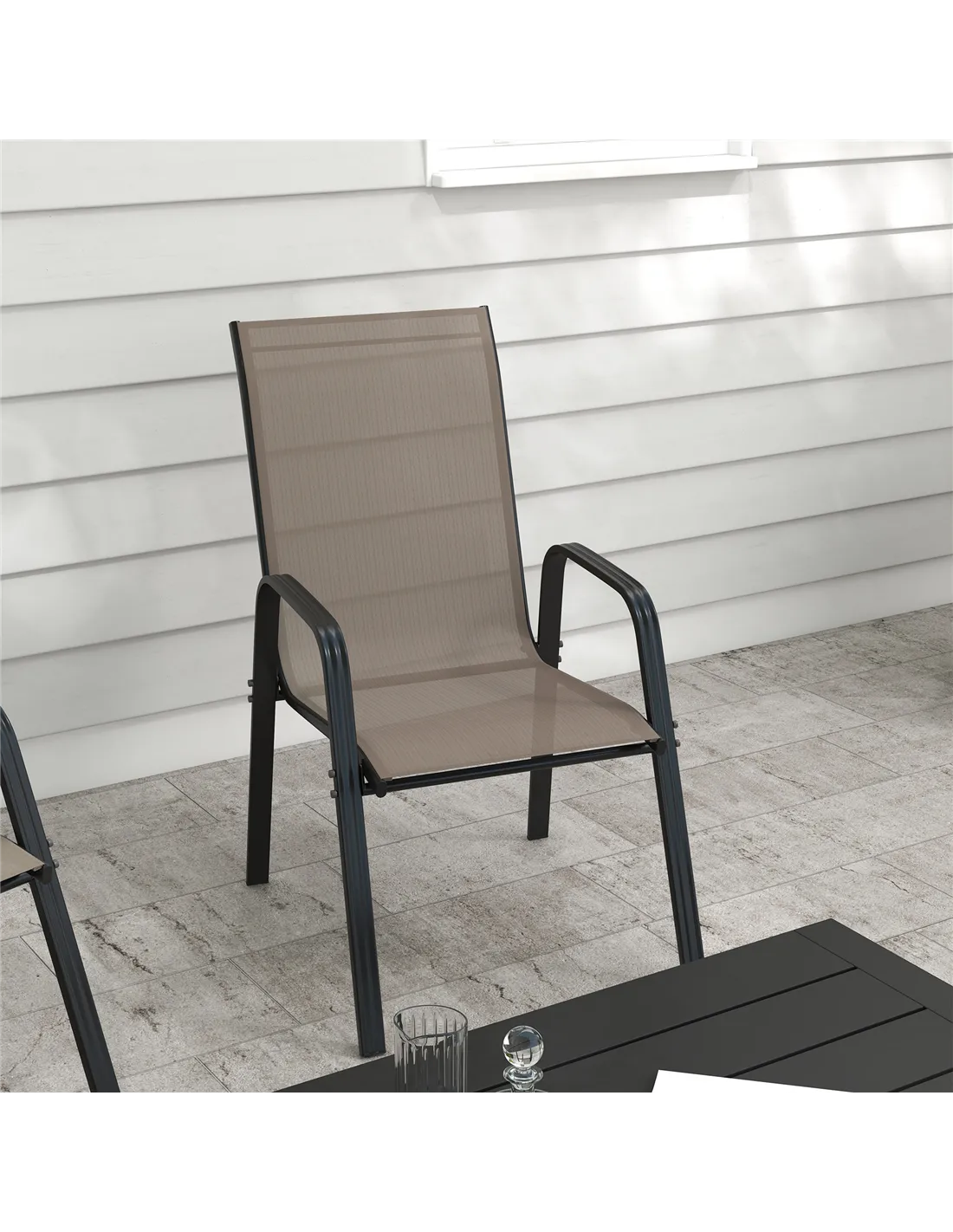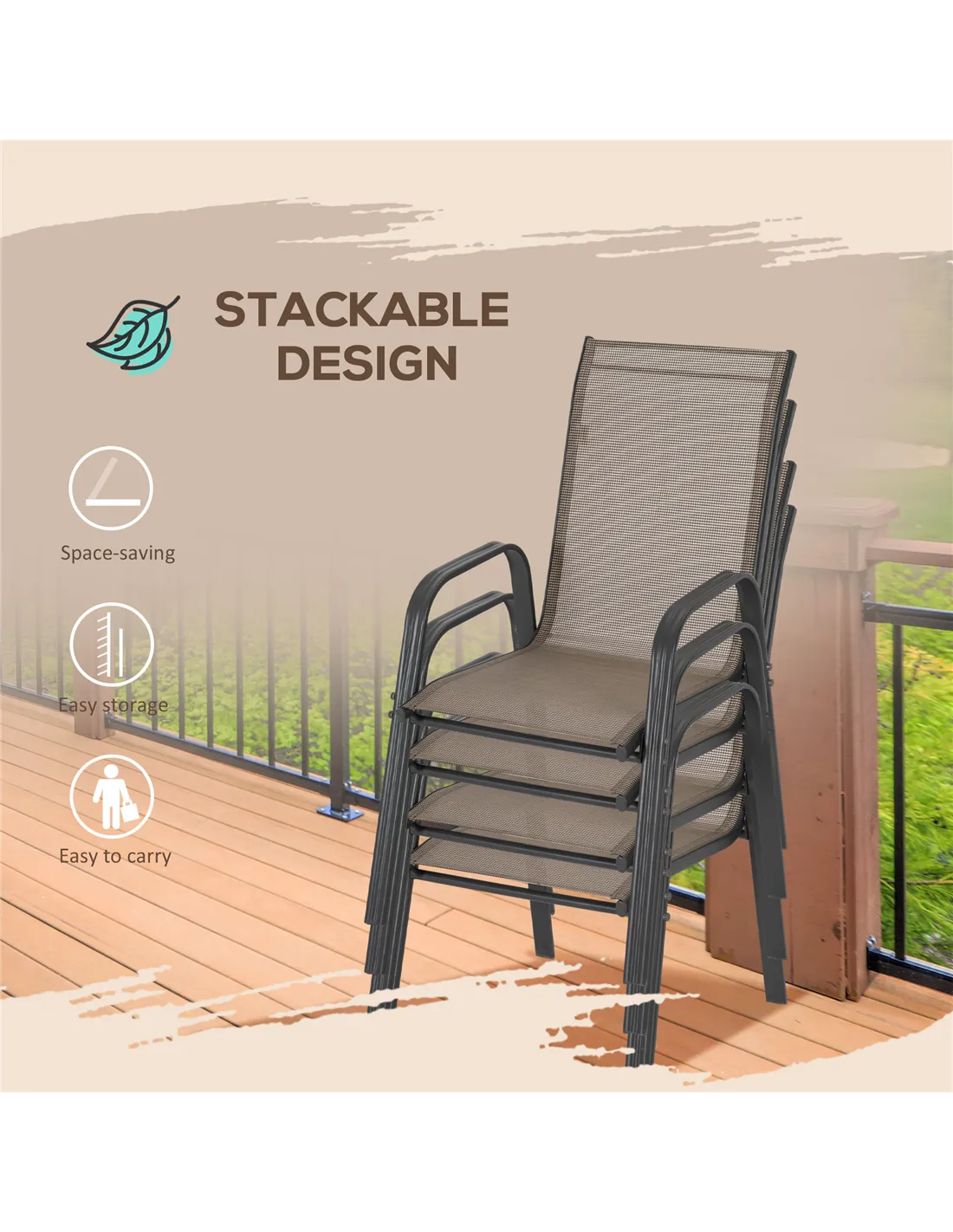 Sit outdoors with friends, thanks this Outsunny set of four stackable gardens. The high back and armrests support your body. The breathable mesh fabric is comfortable. The stackable design makes it compact for easy storage. A set to bring your favourite people together outdoors.