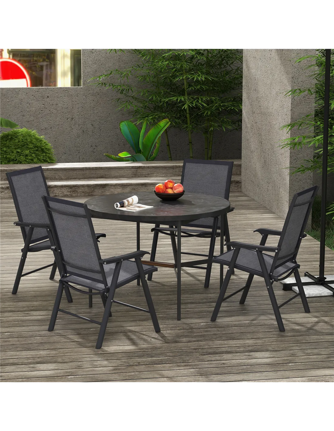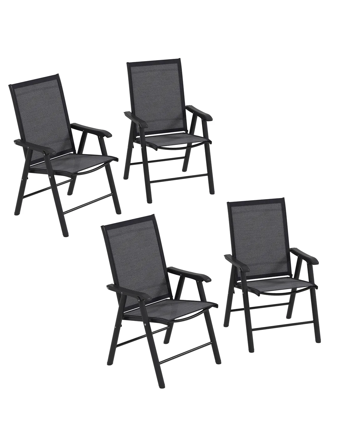 Outsunny Set of 4 Folding Garden Chairs, Metal Frame Garden Chairs Outdoor Patio Park Dining Seat with Breathable Mesh Seat, Dark Grey