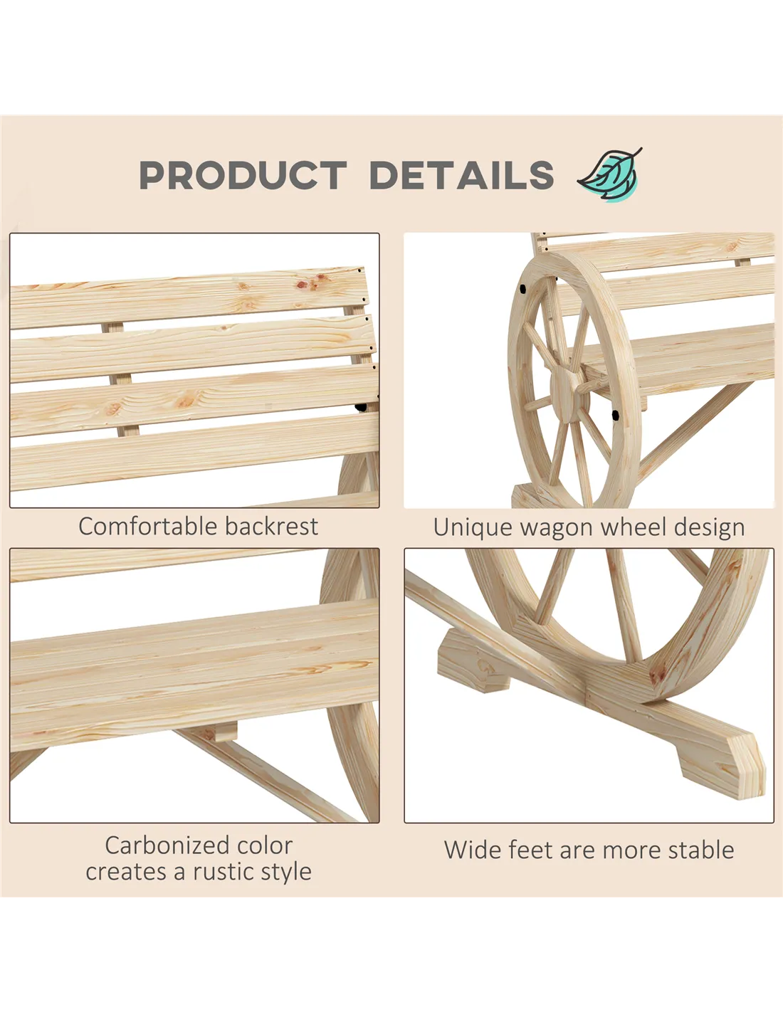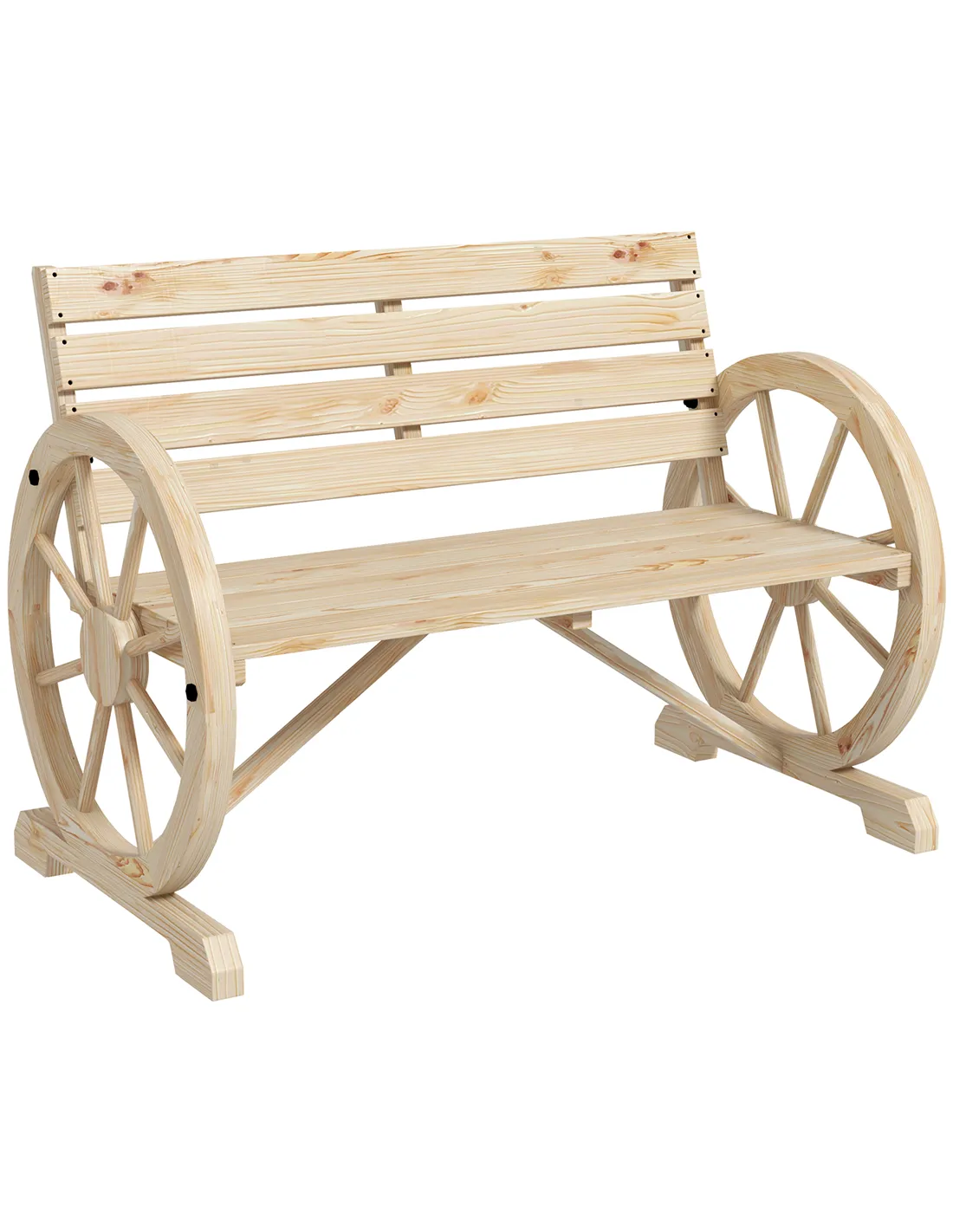 Outsunny Wagon Wheel Chair Bench Armrest Rustic Loveseat Wood Outdoor Garden, Natural