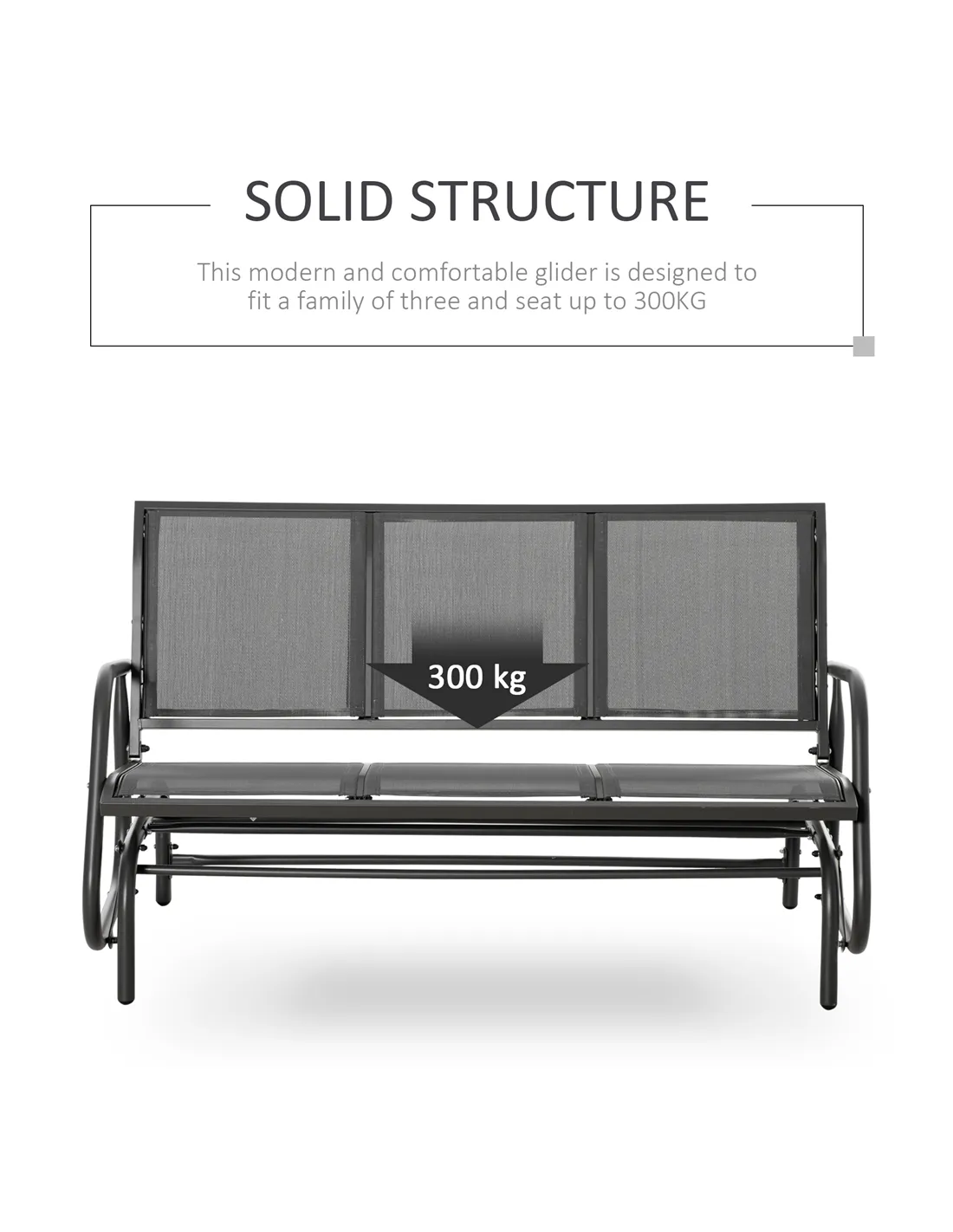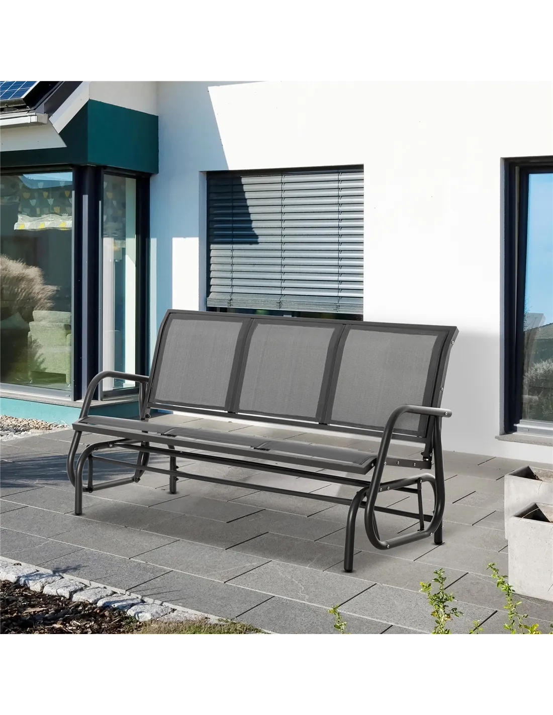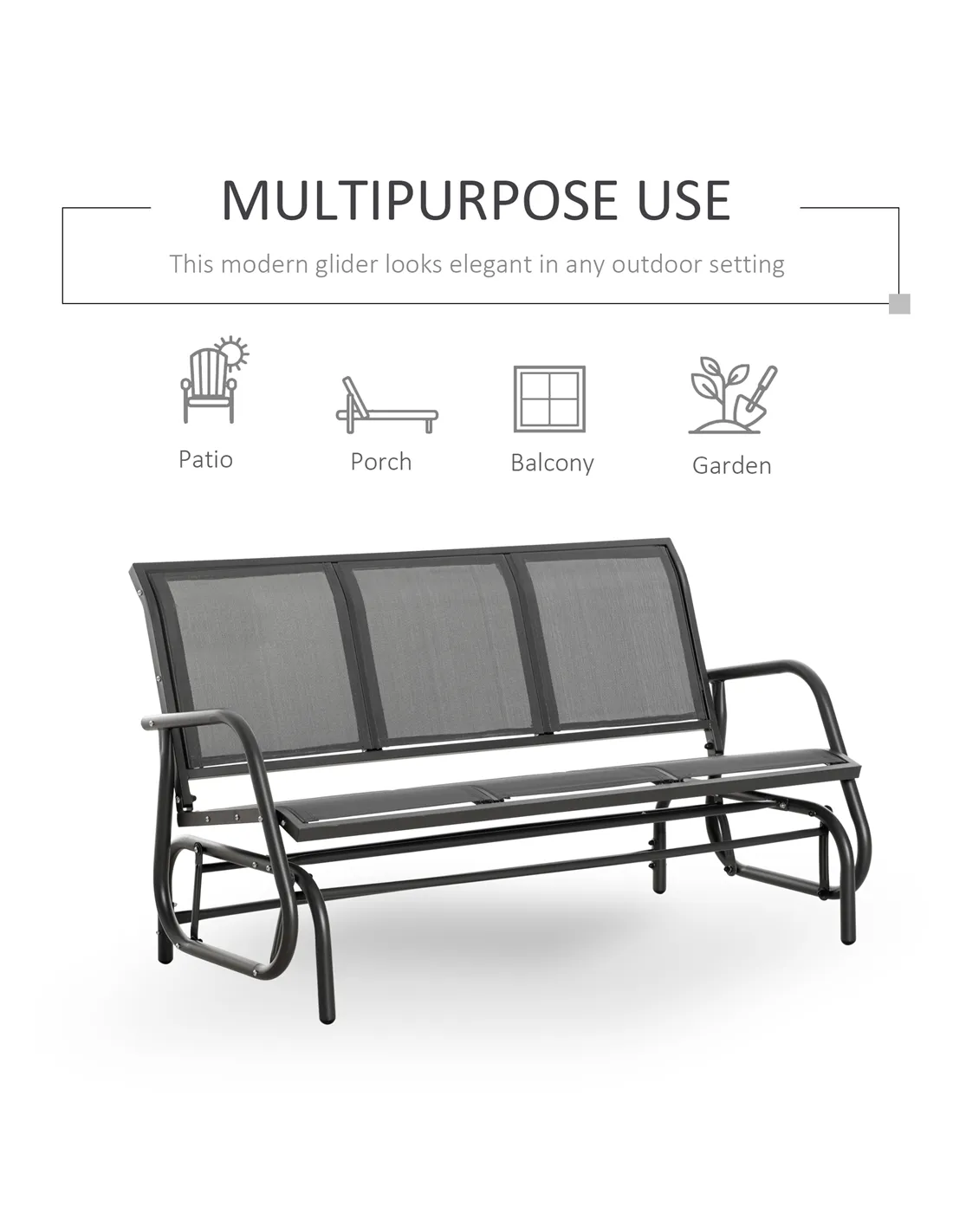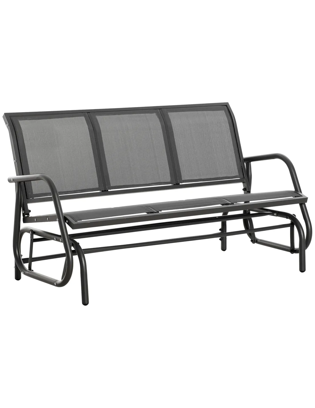 Unwind outdoors the effortlessly smooth way with this gliding bench from Outsunny. Using powder coated metal for a strong and robust frame, it is covered with mesh fabric for a breathable seat and back. Curved back and armrests support your body. The frame is securely attached to the base, letting it rock back and forth smoothly for an enjoyable experience every time.