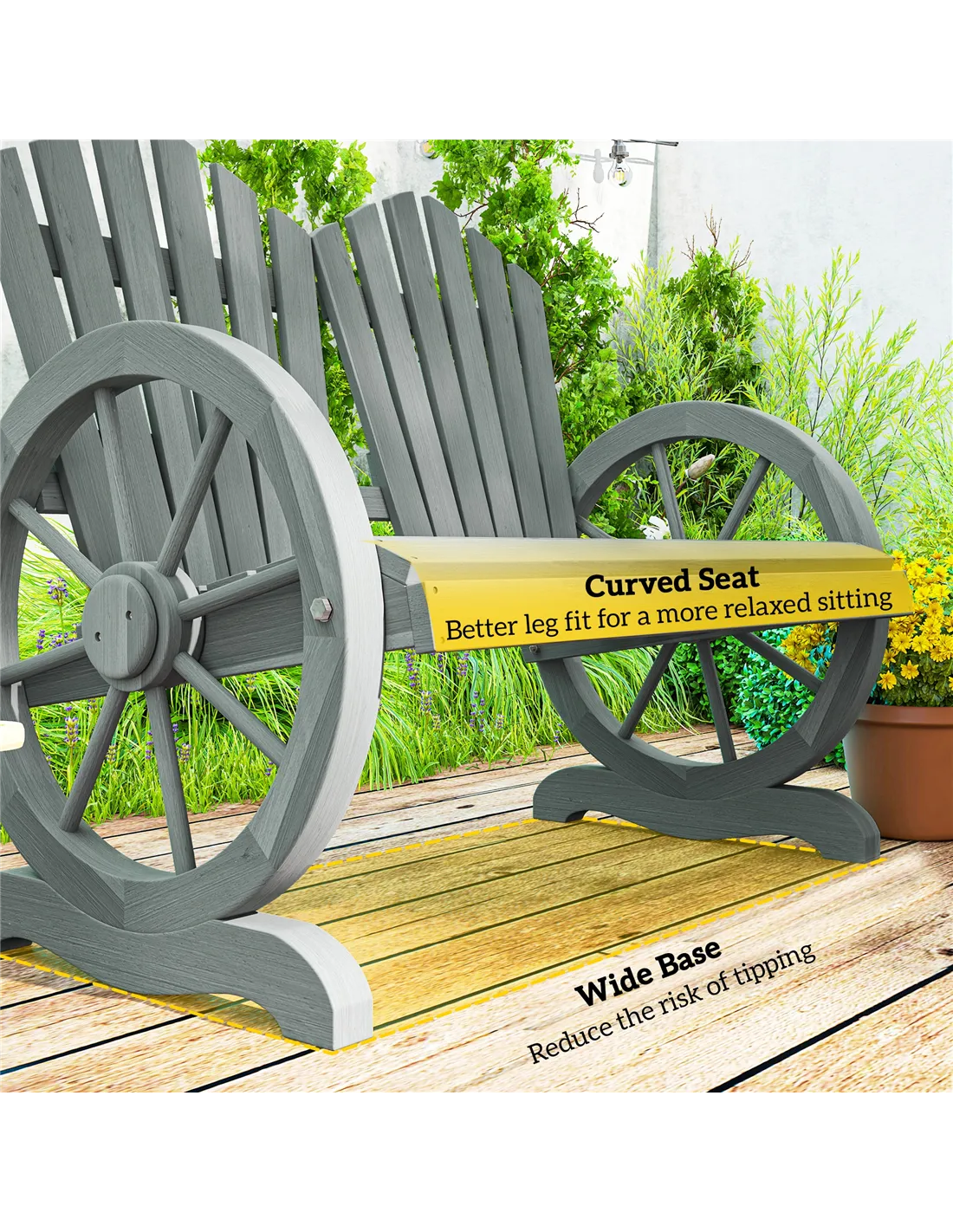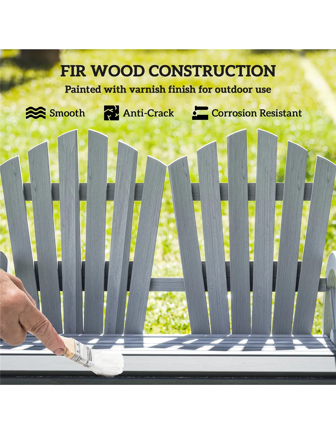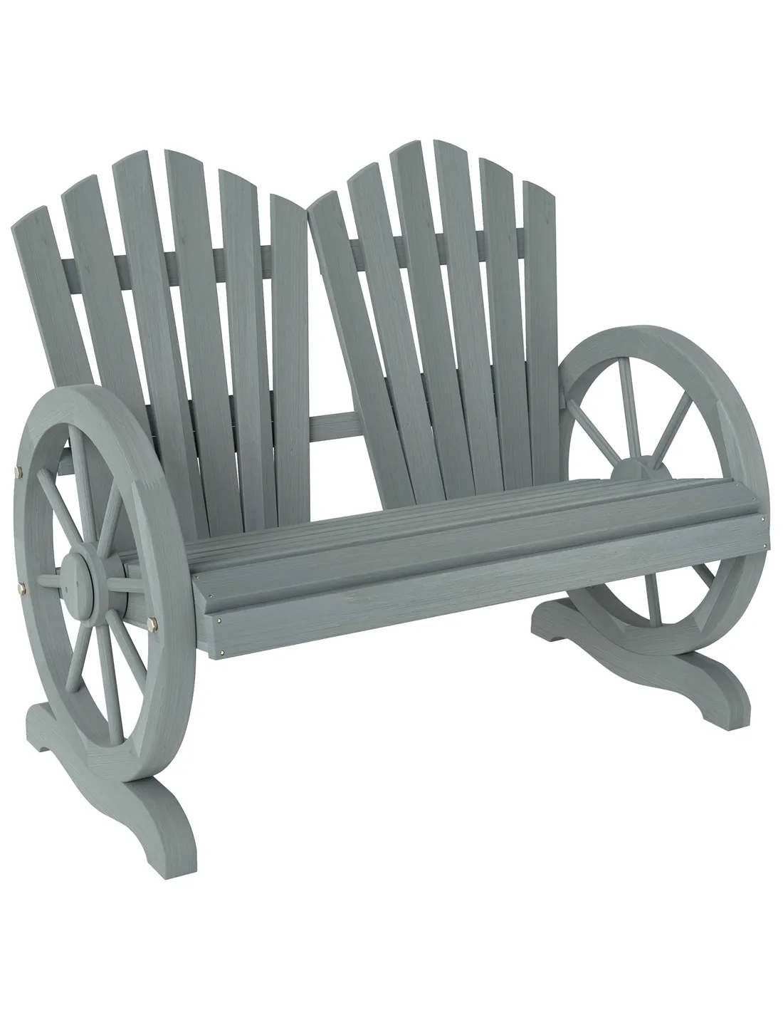 Outsunny Fir Wood Love Seats with Wheel-Shaped Armrests, Large Load-Bearing Chair, Grey