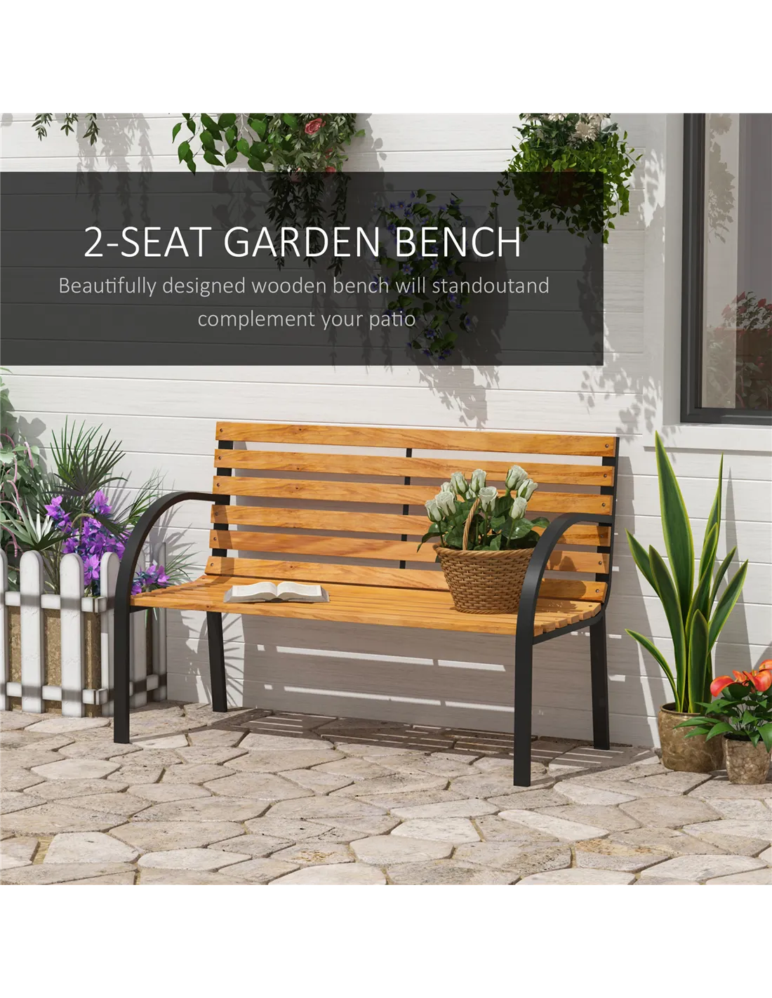 The blooming Outsunny outside bench is ideal for enjoying your favorite peaceful spot, along a path, under a tree, or among the flowers. Constructed with a steel frame to ensure a durable garden bench seat for years to come. Relax with friends or family members and enjoy the scenery of your front or backyard. The tough steel construction and 122cm length of this wooden garden seat allow for 2 individuals to comfortably sit at once.