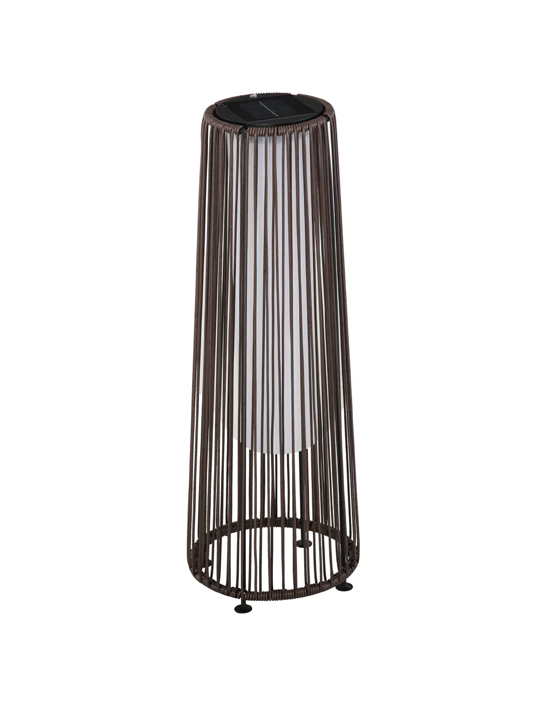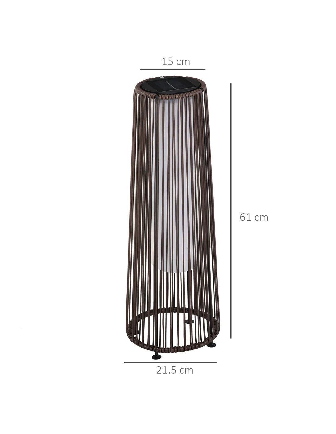 Wonderful weaves displayed in a new way - this solar powered lamp from Outsunny is a sophisticated touch for your outdoors this season. The structure made from strong powder coated steel, it's crafted into a graduating cylinder shade for a cool look which holds its balance. The stringed design is wrapped in PE wicker for a garden-appropriate look, which also protects the structure. Inside there are lights to illuminate your space at night, with a maximum run time of eight hours. It automatically turns on and off and charges in the daylight, meaning no electricity connection is required. Beautiful nighttime ambience starts here.