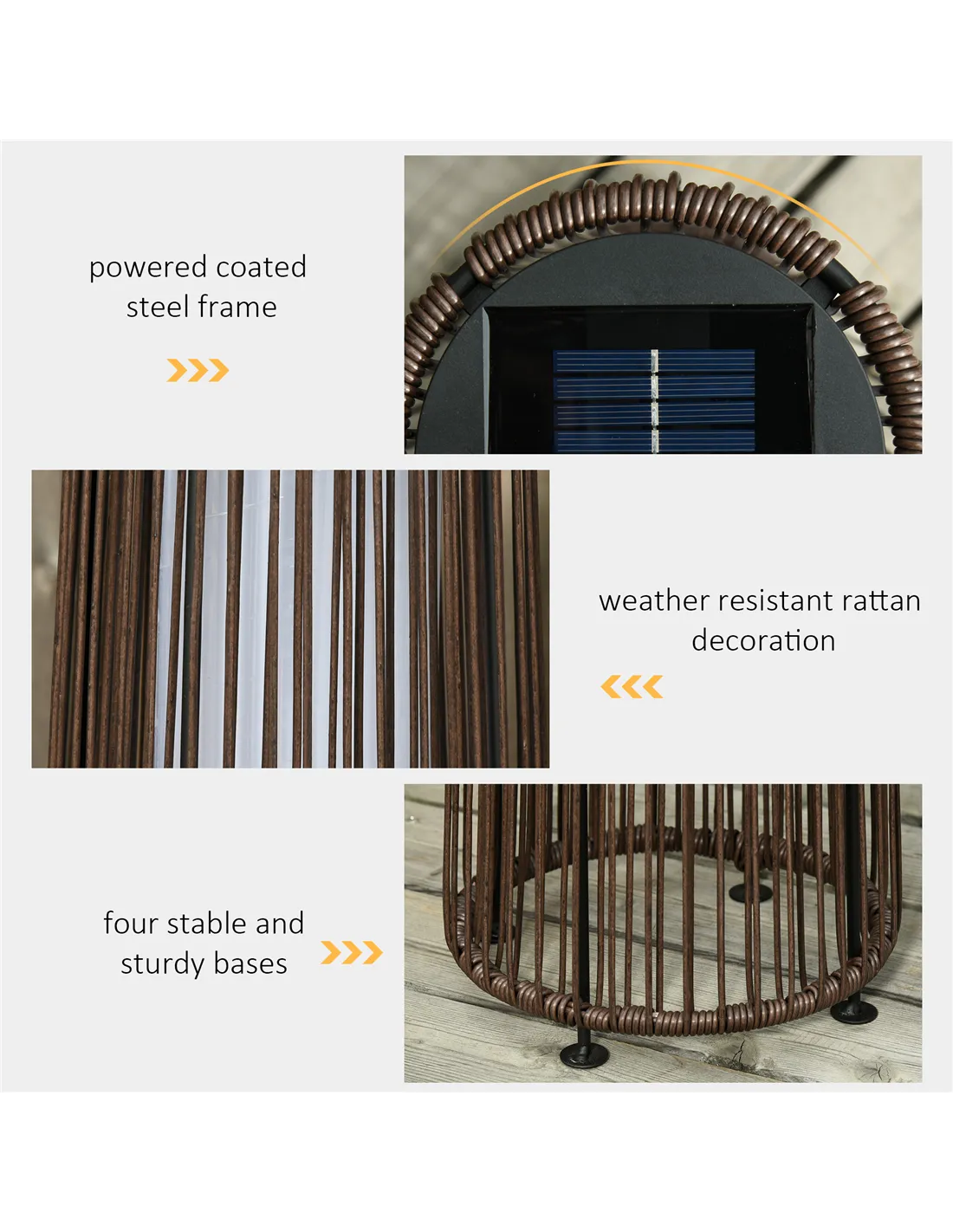 Based on customer reviews, the Outsunny solar rattan lantern is praised for its elegant design and reliable performance. Users appreciate the durable powder-coated steel frame combined with weather-resistant PE wicker, which withstands UK outdoor conditions effectively. Many highlight the convenience of the automatic on/off feature and the impressive eight-hour illumination after a full charge. The warm yellow light is frequently mentioned as creating a welcoming ambience without being overpowering. Assembly is straightforward, making it a popular choice for those seeking stylish, low-maintenance garden lighting.