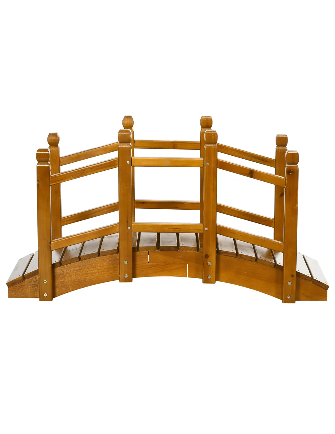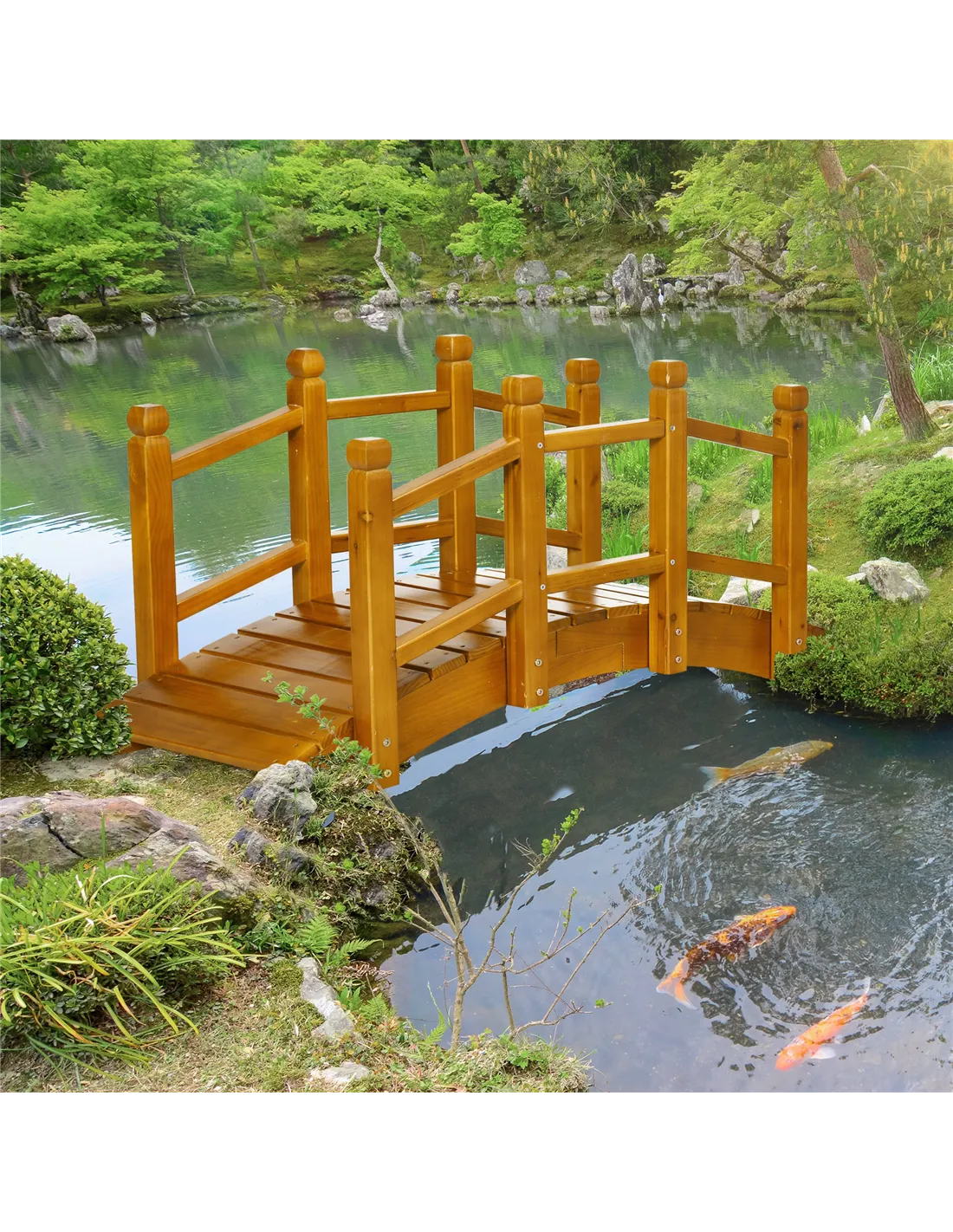 Outsunny Wooden Garden Bridge with Safety Railings, Arc Footbridge for Pond Backyard Stream, Brown