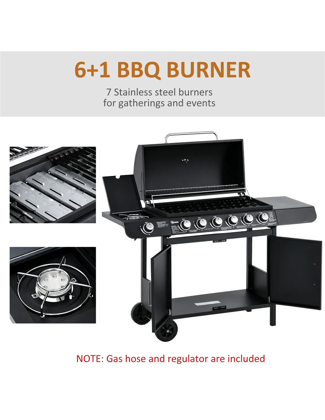 - NOTE: Regulator and Hose are Included with the BBQ grill.(pipe size: diameter=8mm, length>0.8m)