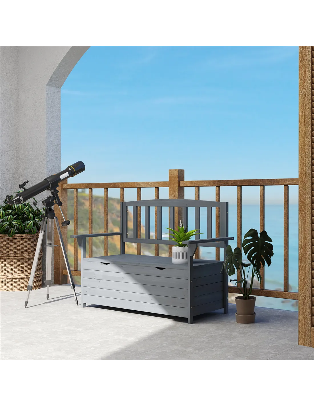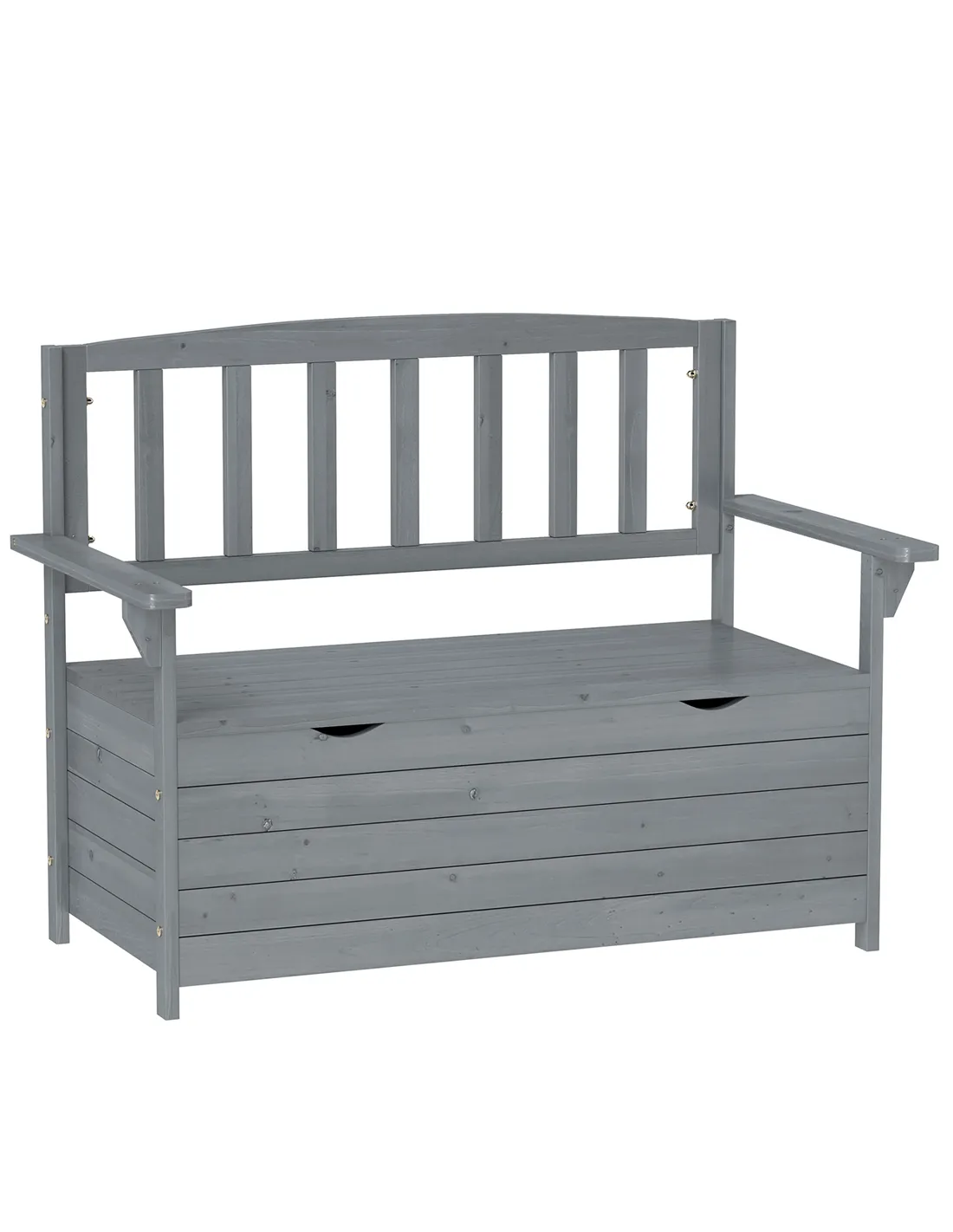 The Outsunny two-seater garden storage bench in grey is a versatile addition to any outdoor space. Ideal for patios, balconies, gardens, or allotments, it offers both comfortable seating and practical storage. Use it to neatly stow gardening tools, cushions, or outdoor toys, keeping your area tidy and organised. Thanks to its robust fir wood construction and natural finish, it complements a variety of garden styles, whether traditional or contemporary. Perfect for enjoying a morning coffee or relaxing with a friend, this bench enhances your outdoor living experience with both style and function.