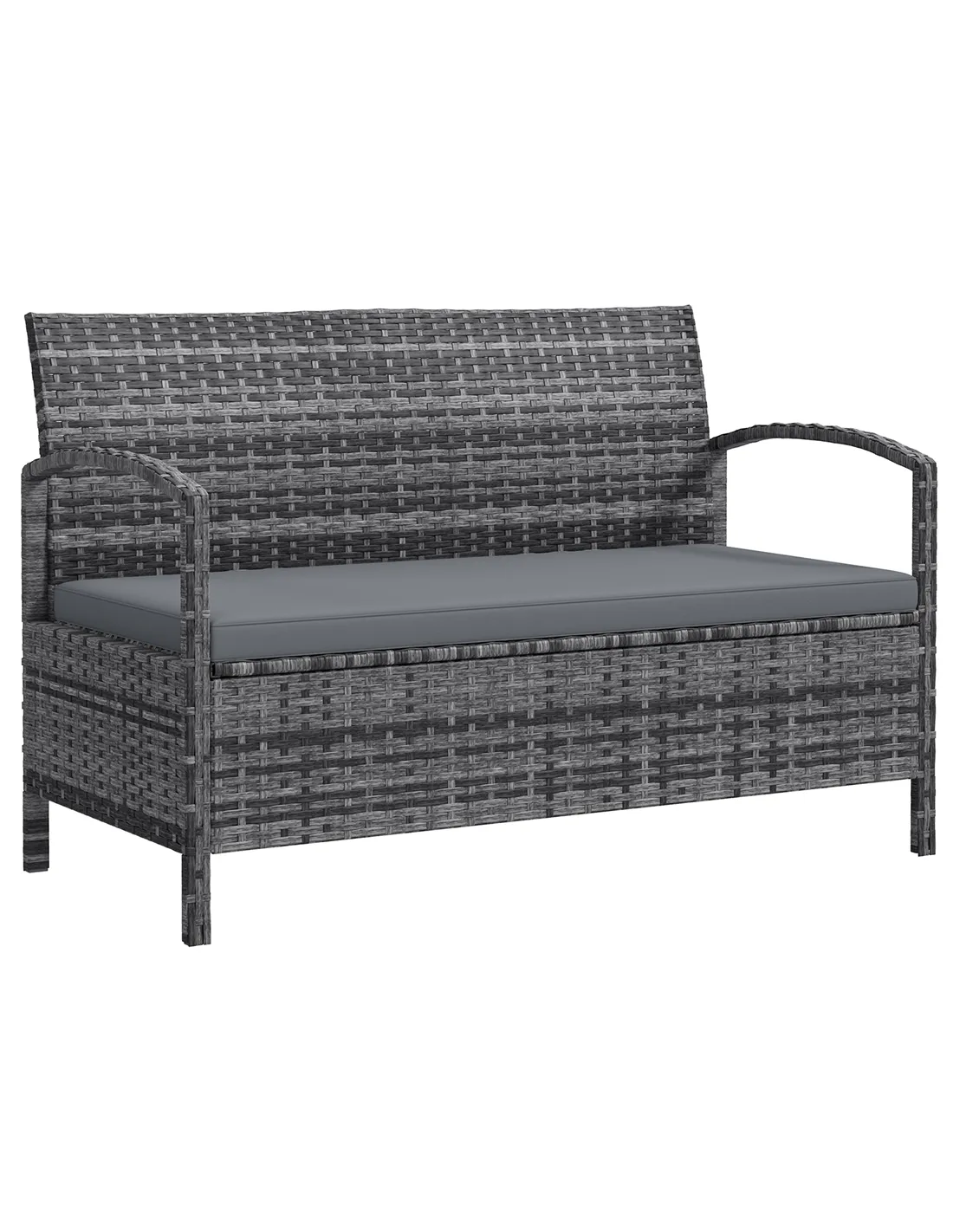 This Outsunny garden bench comes in a 2-in-1 design: a two-seater rattan bench and a garden storage box. The garden storage seat has a galvanised and powder coated, steel frame for a strong core, wrapped in stylish and tough rattan wicker. The 125L inner storage provides plenty of room to keep garden accessories stored together. Complete with a soft cushion to relax comfortably.