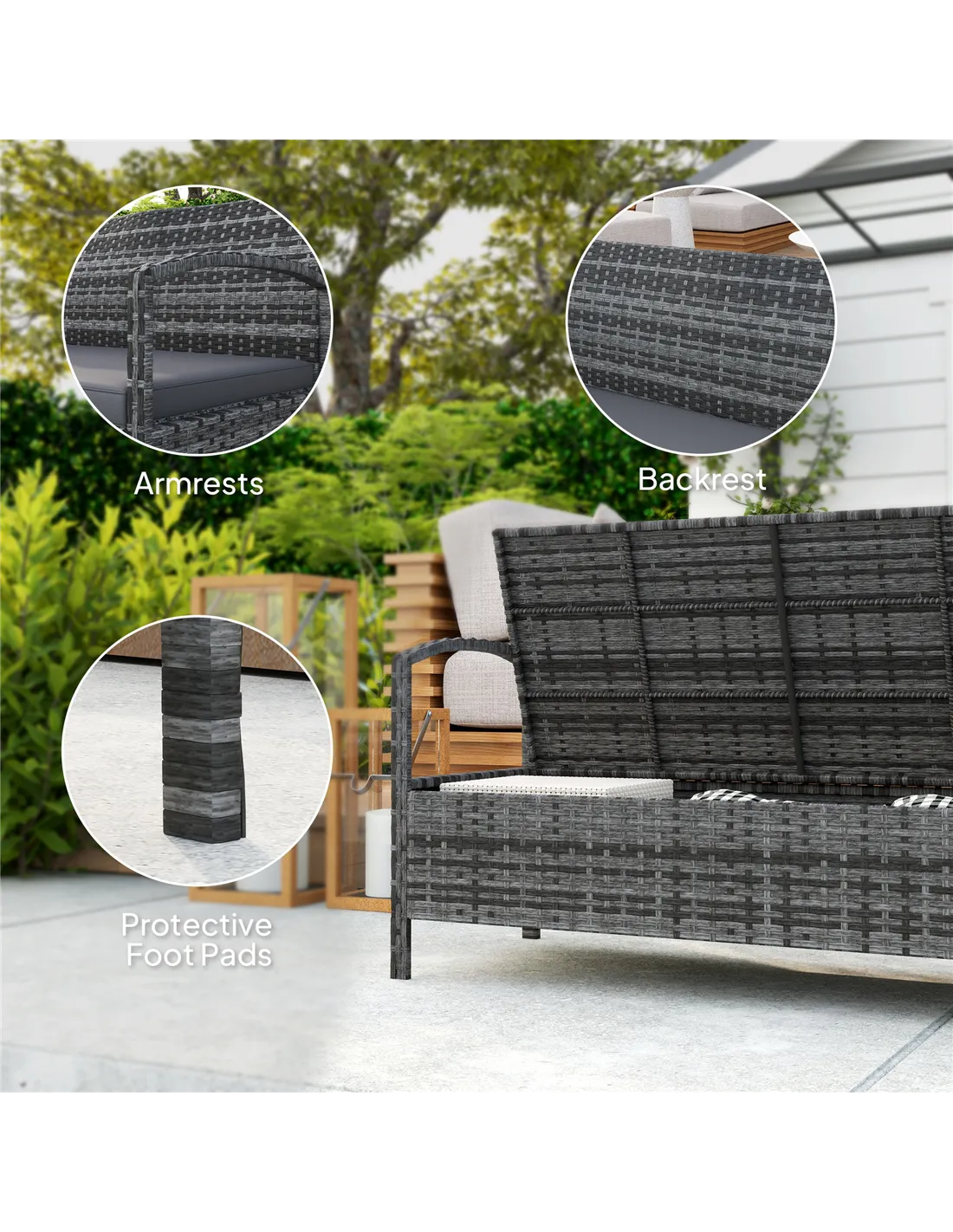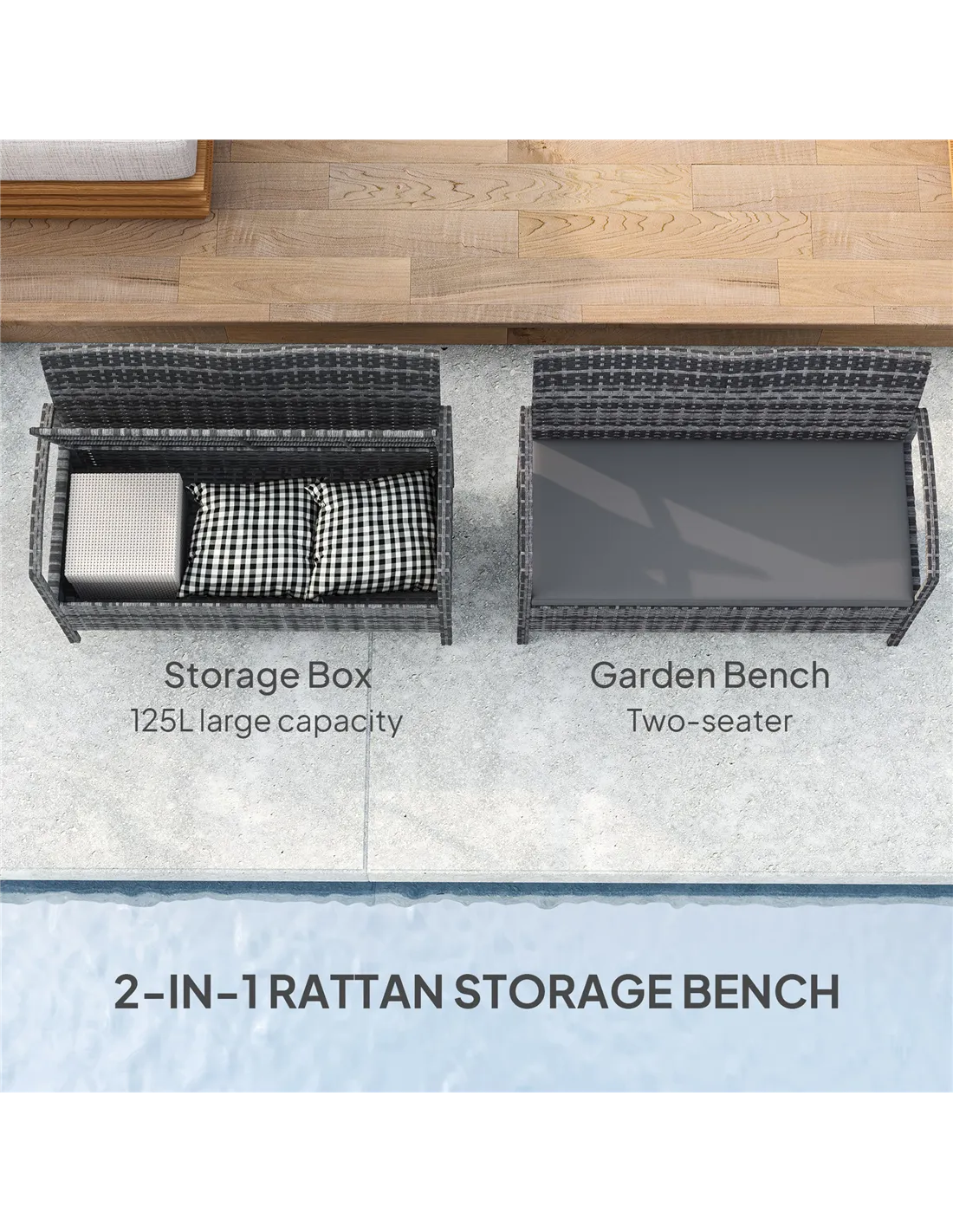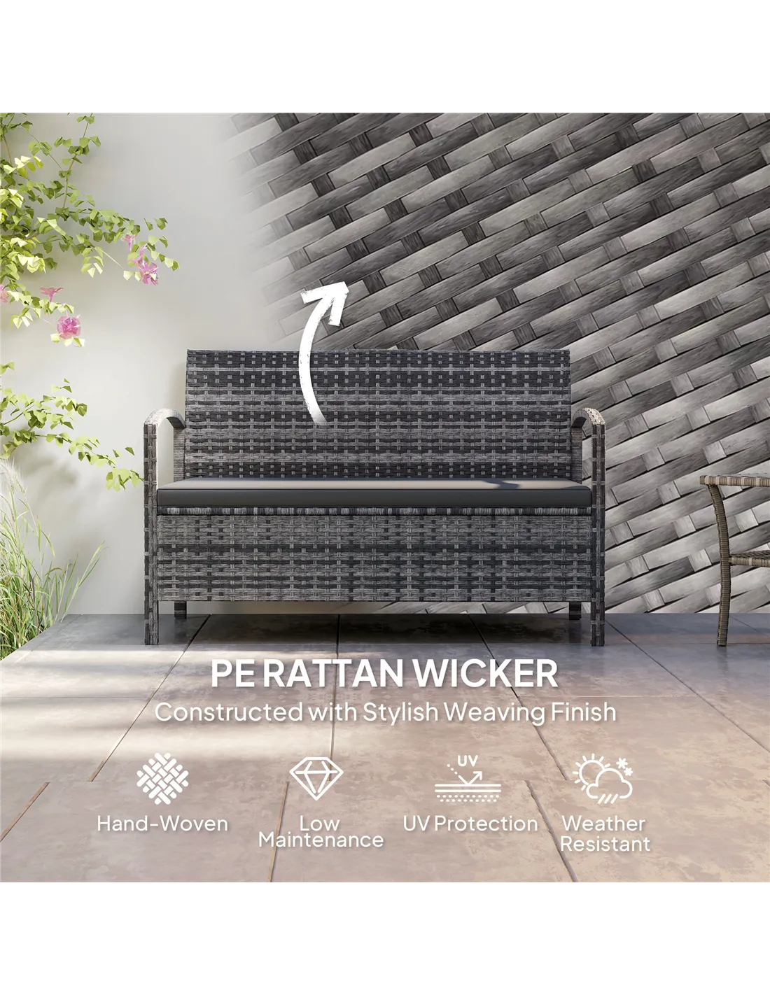 - Perfect for creating a cosy seating area on your patio, balcony, or garden, combining comfort with practical storage.
