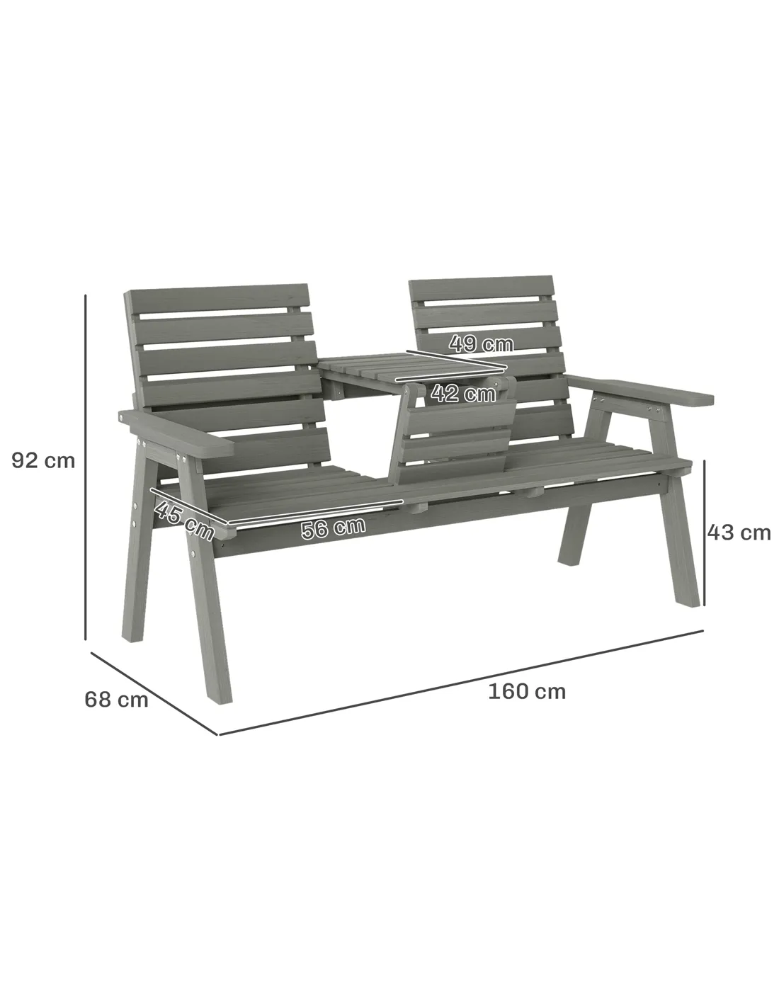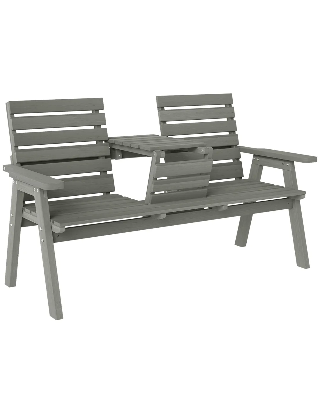 Outsunny Fir Wood Convertible 2 to 3 Seater Outdoor Garden Bench Grey