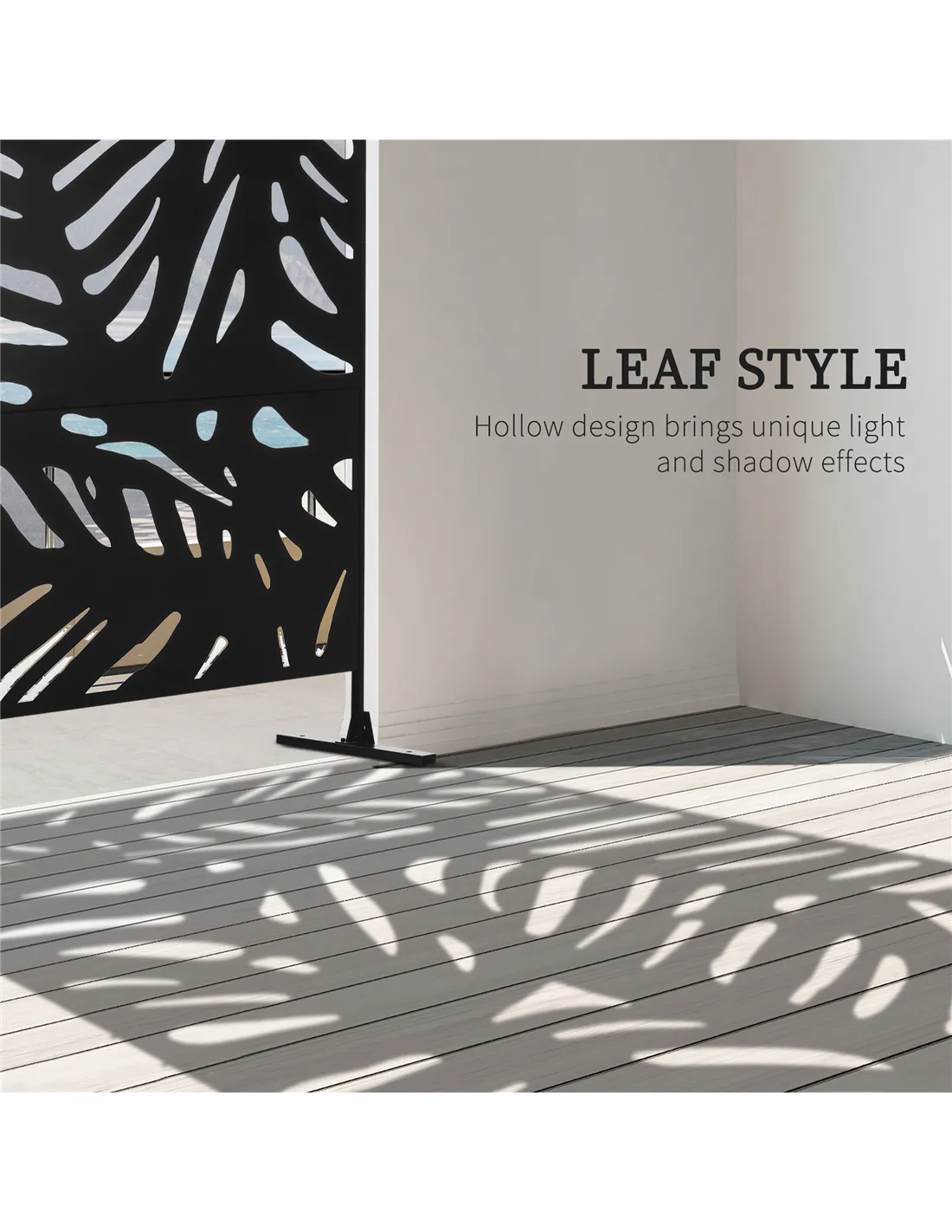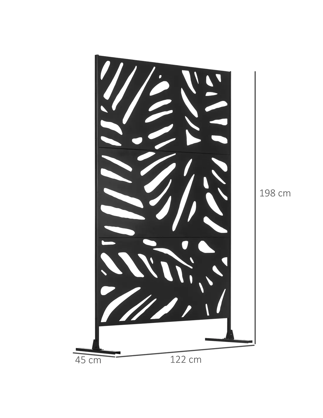 Outsunny Decorative Garden Privacy Screen with Stand, 6.5FT Freestanding Metal Outdoor Divider, Decorative Privacy Panel with Expansion Screws for Garden Pool Hot Tub, Large Leaves Style, Black