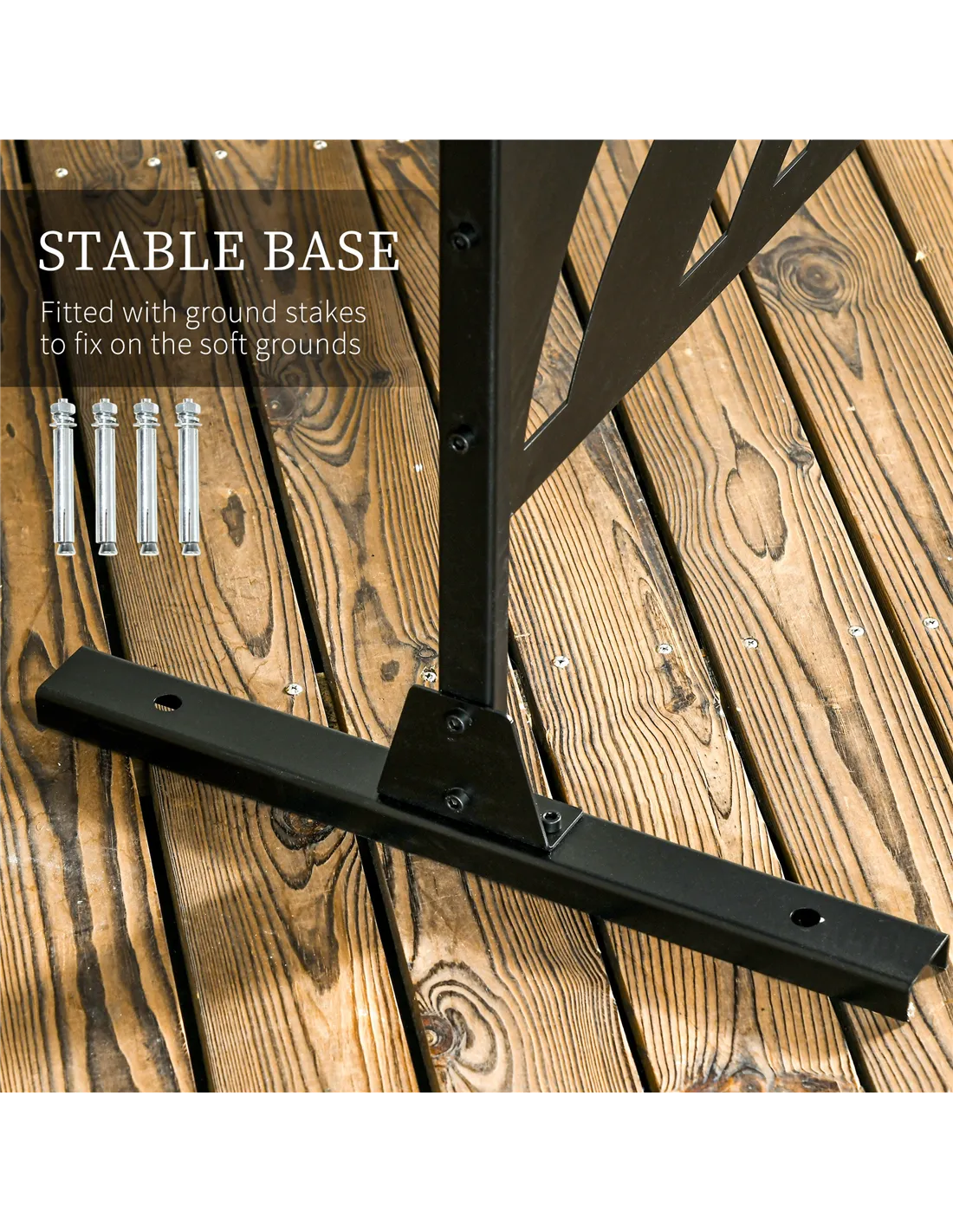 - Can be positioned freestanding or securely fixed to the ground using the included expansion screws and additional weights for stability in windy conditions.