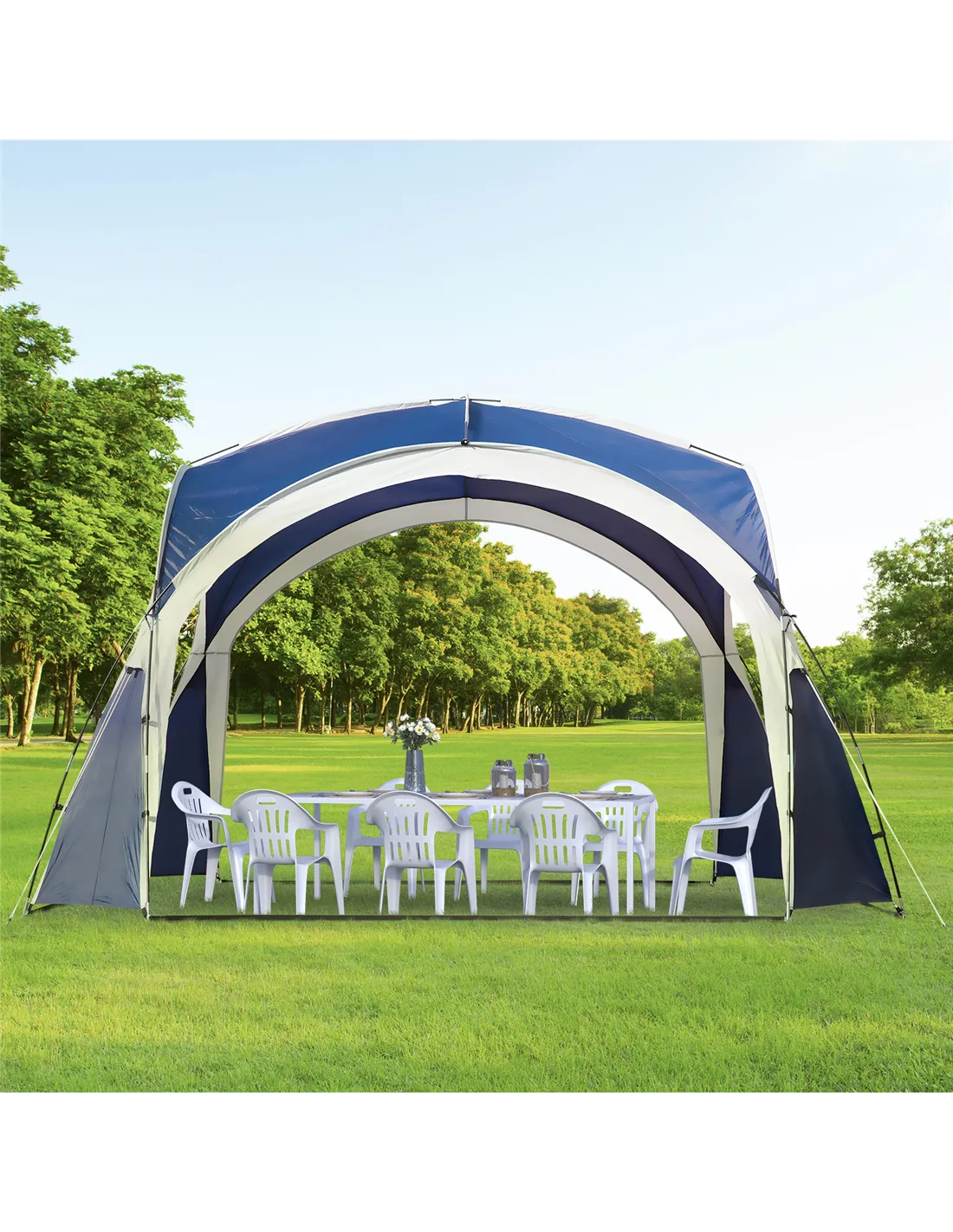 Enjoy the outdoors all year round with this dome tent gazebo from Outsunny. 3.5 x 3.5m size is spacious enough to fit plenty of friends and family under, with the open side designs allowing extra space to spill out if needed, as well as providing plenty of air circulation all day and night long. Set comes with 12 ground pegs and four guy ropes to hold it firmly into the ground. You can take this beach shelter in the included bag to BBQs, picnics, outdoor events and more.