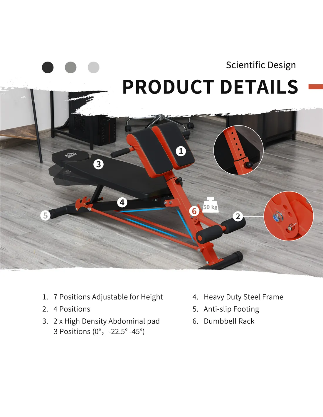 HOMCOM Multifunction Weight Bench with 2 Dumbbells, 7-Level Adjustable Hyper Extension Sit-up Bench