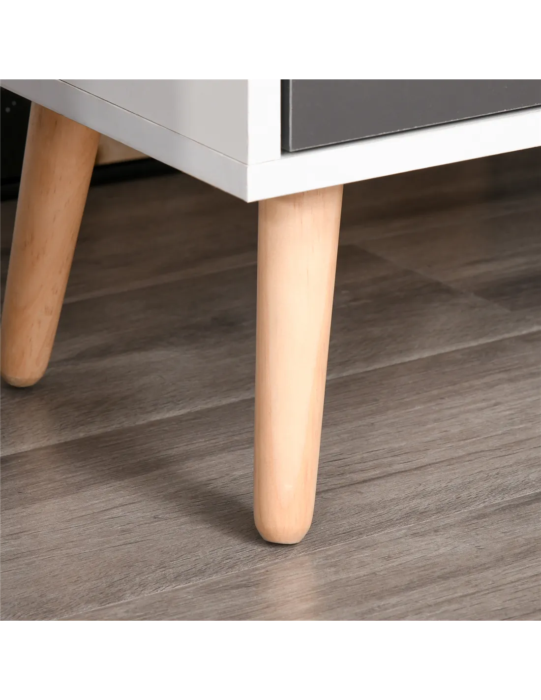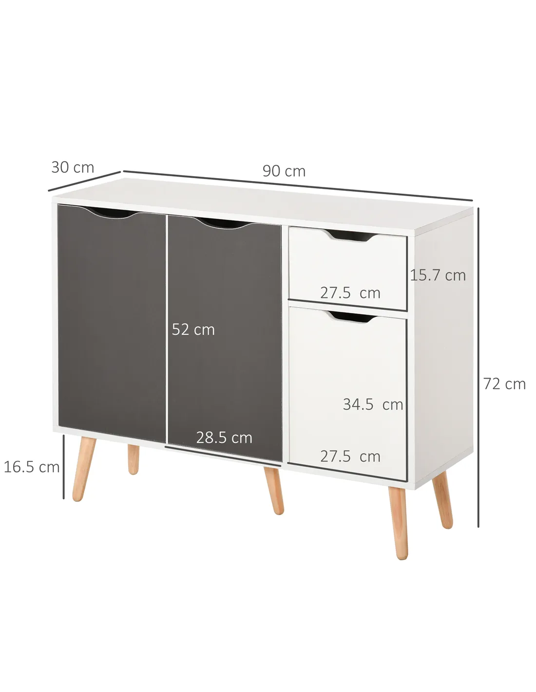 Keep your home stylish and the space tidy: look no further than this freestanding cabinet from HOMCOM. Cut to a clean boxy shape for simplicity, it comes with two large cupboards, a smaller cupboard and a top drawer, giving an abundance of handy storage. The white frame is clean, with the mix of white doors and coloured doors adding a unique point of difference so it stands out. Made from particle board, this piece is durable, finished with five wooden legs so it stands steady and back straps so it doesn't topple over.