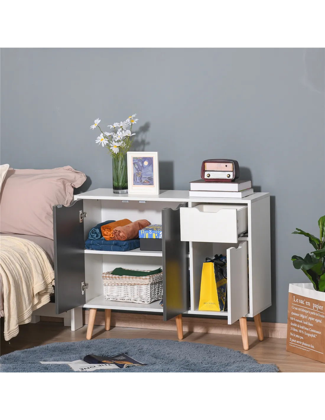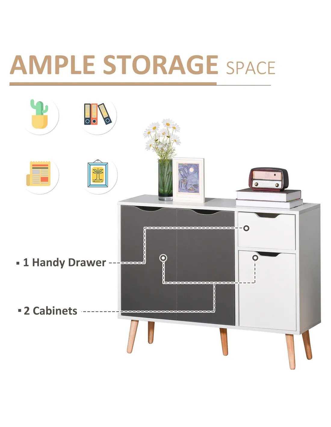 HOMCOM Sideboard Floor Standing Storage Cabinet with Drawer for Bedroom, Living Room, Home Office, Grey