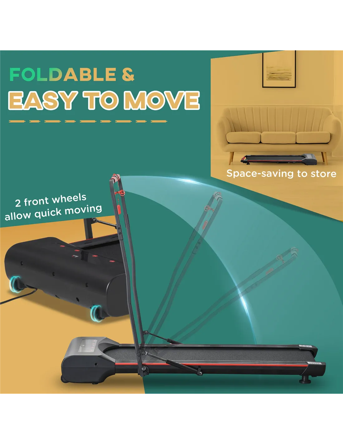 The HOMCOM foldable walking machine is ideal for integrating light exercise into your daily routine, whether at home or in the office. Its compact design fits comfortably under desks or in small living spaces, allowing you to stay active while working or watching TV. The adjustable speed range from 1 to 6 km/h makes it perfect for gentle walking sessions, rehabilitation, or warming up before more intense workouts. Thanks to its foldable frame and built-in wheels, it can be easily stored in a cupboard or corner when not in use, making it a practical addition to any modern British household or workspace.