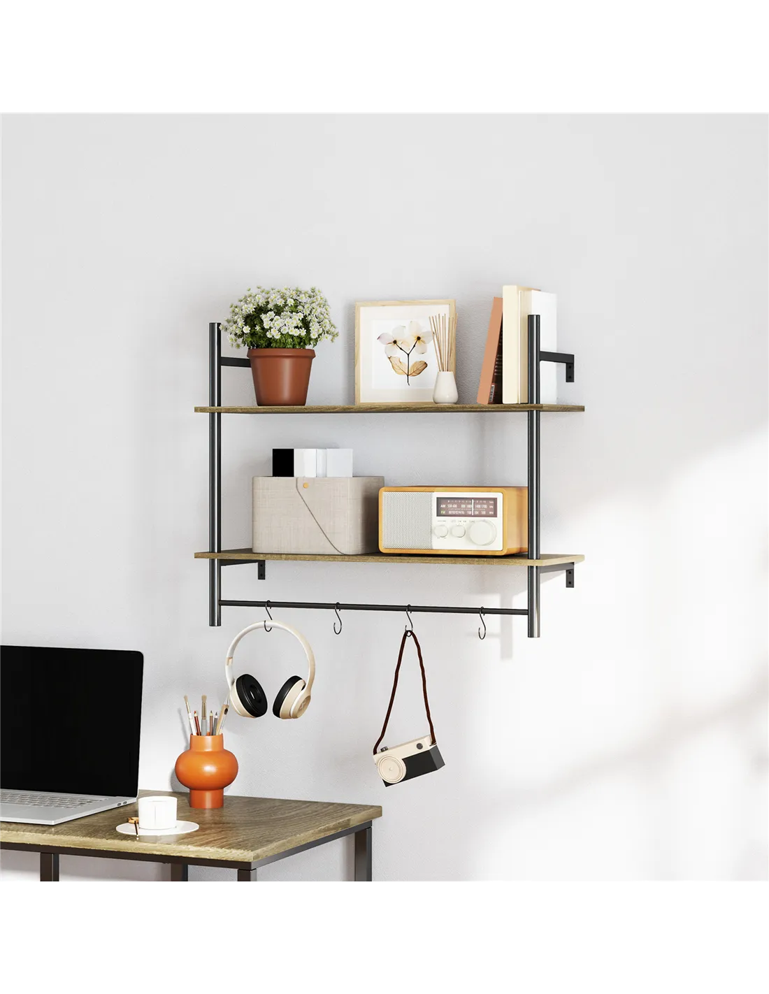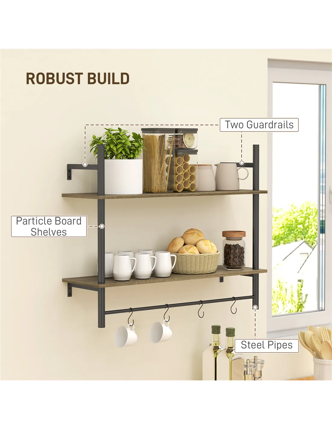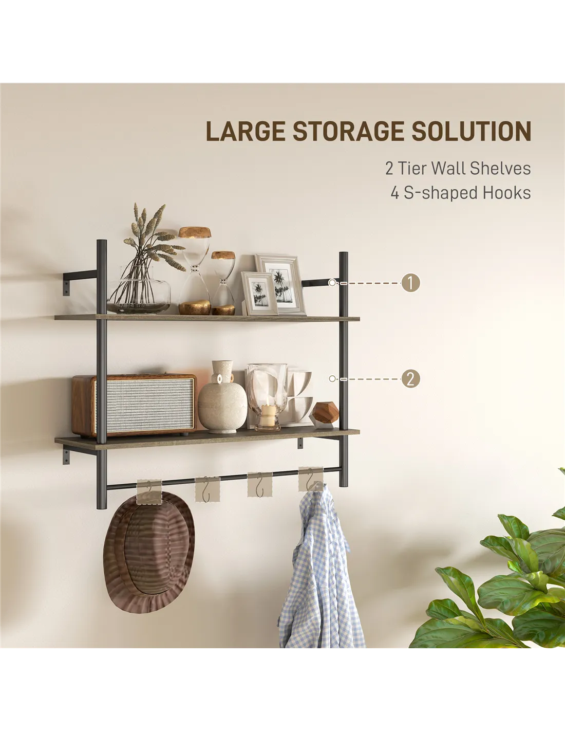 - Two tier wall shelves enhance your storage options