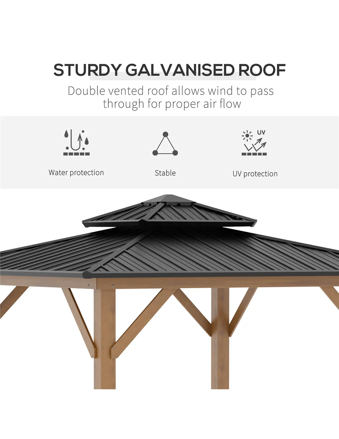 Outsunny 3.5 x 3.5m Outdoor Hardtop Gazebo Canopy with Two-tier Metal Roof and Solid Wood Frame Outdoor Patio Shelter for Patio, Garden, Black