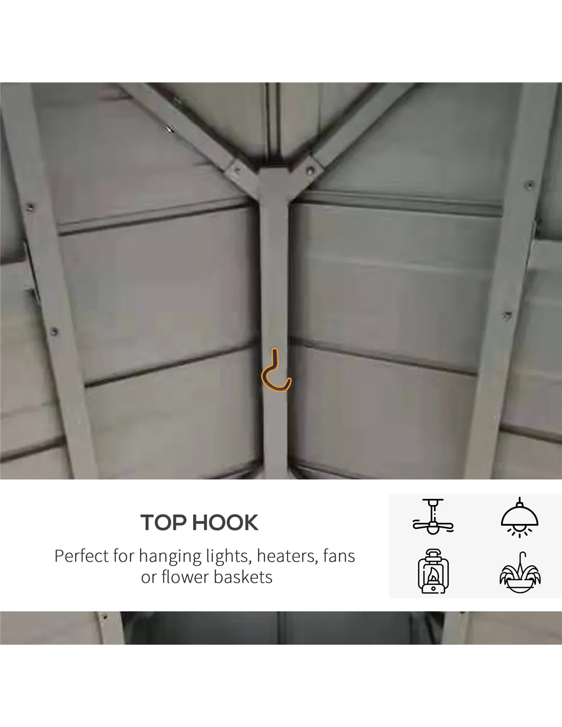 Yes, the gazebo includes ceiling hooks suitable for hanging lamps, fans, or flower baskets. Please avoid using naked flames inside for safety reasons.
