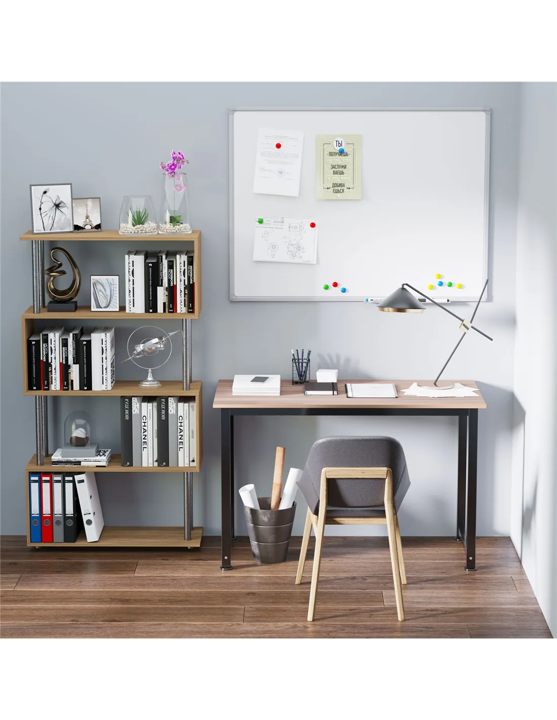 - Material: Particle Board, Steel