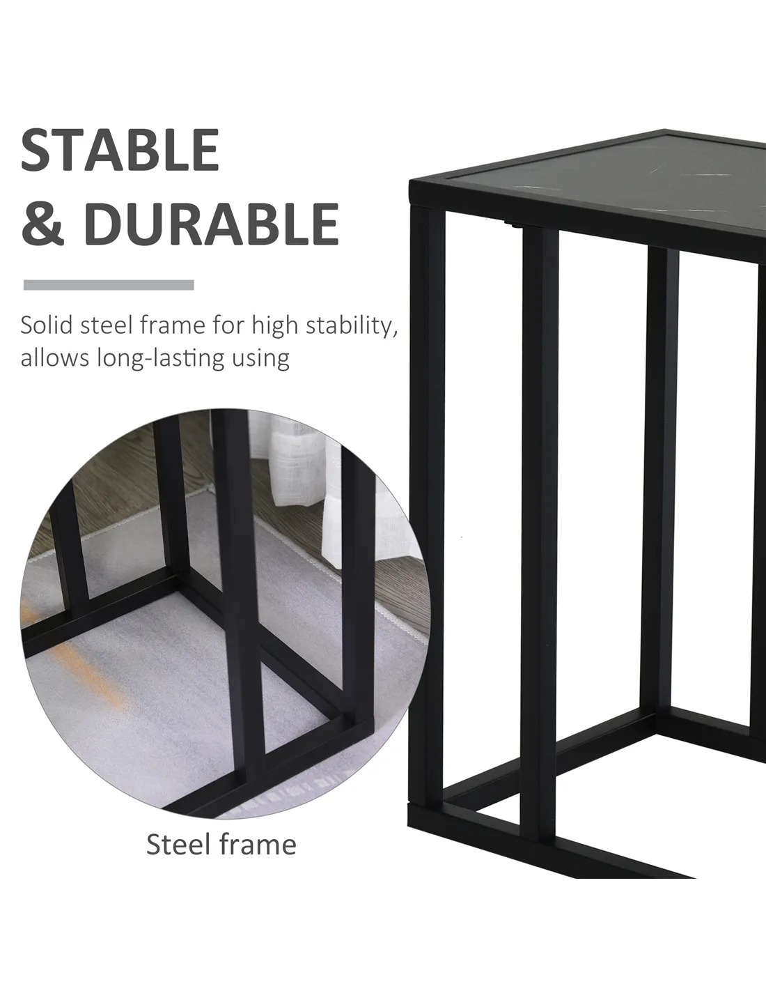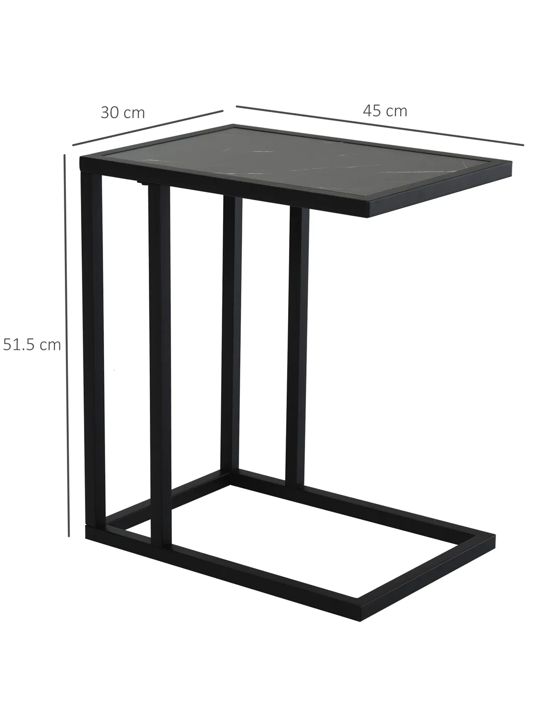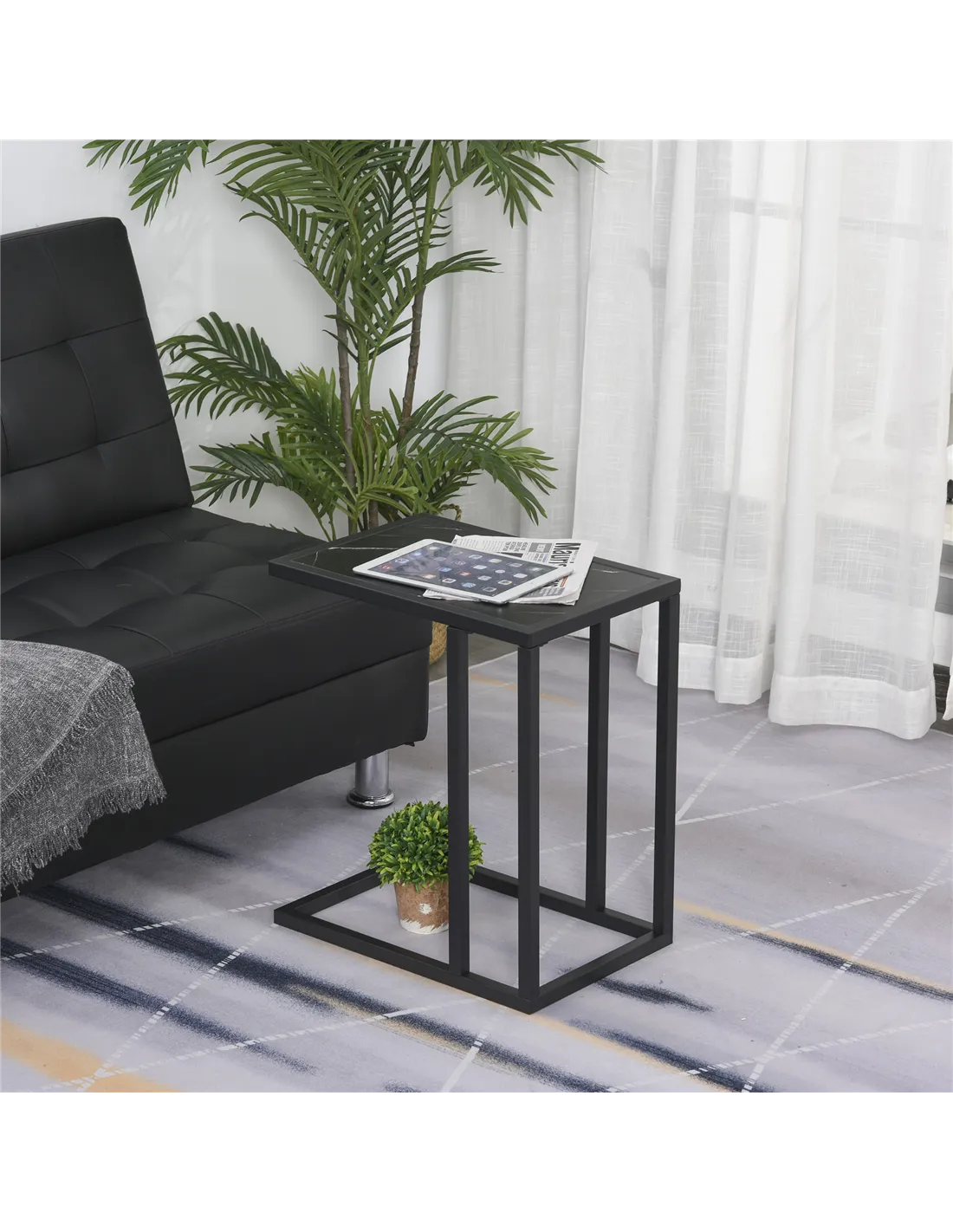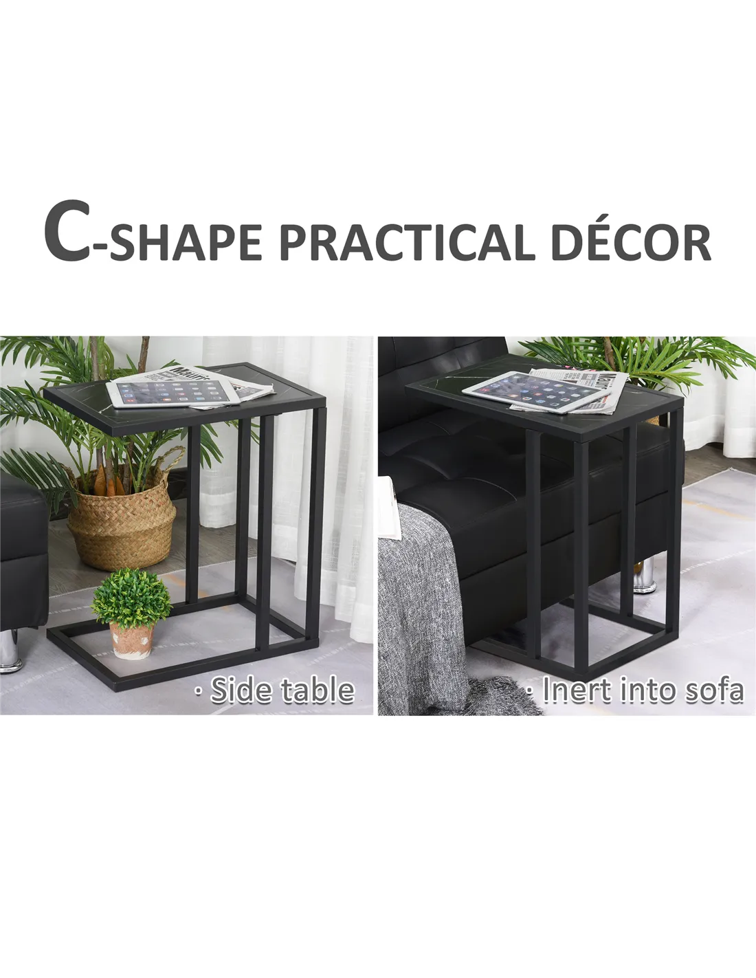 HOMCOM C Shape Bedside Table w/Metal Frame Marble-Effect Top Sofa Narrow Snack End Table for Living Room, Black