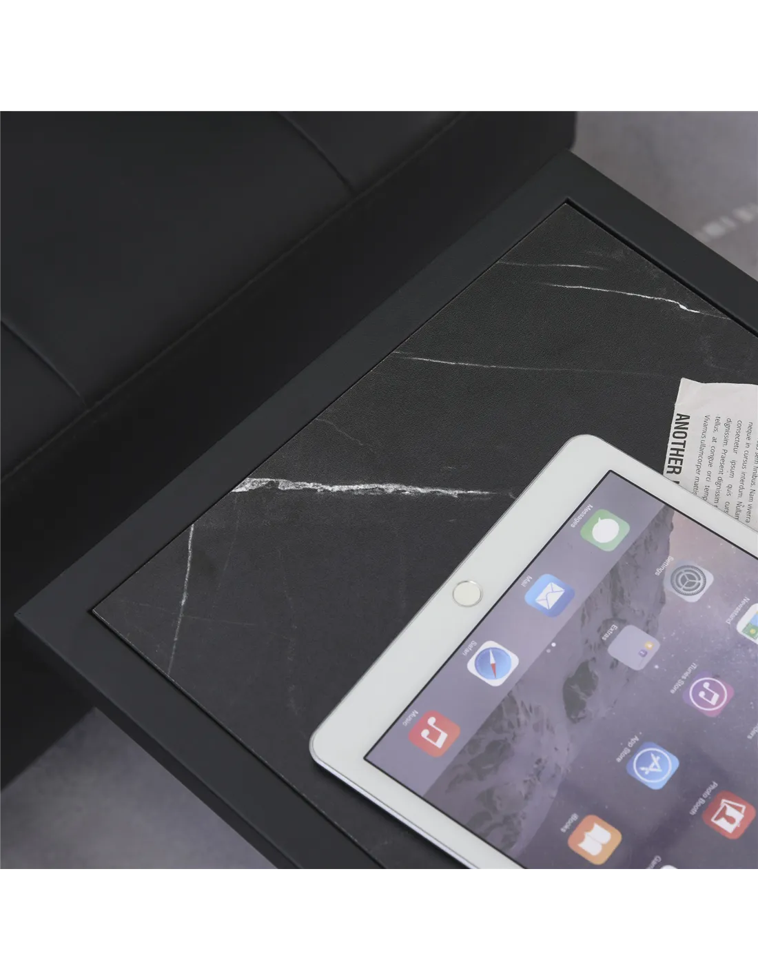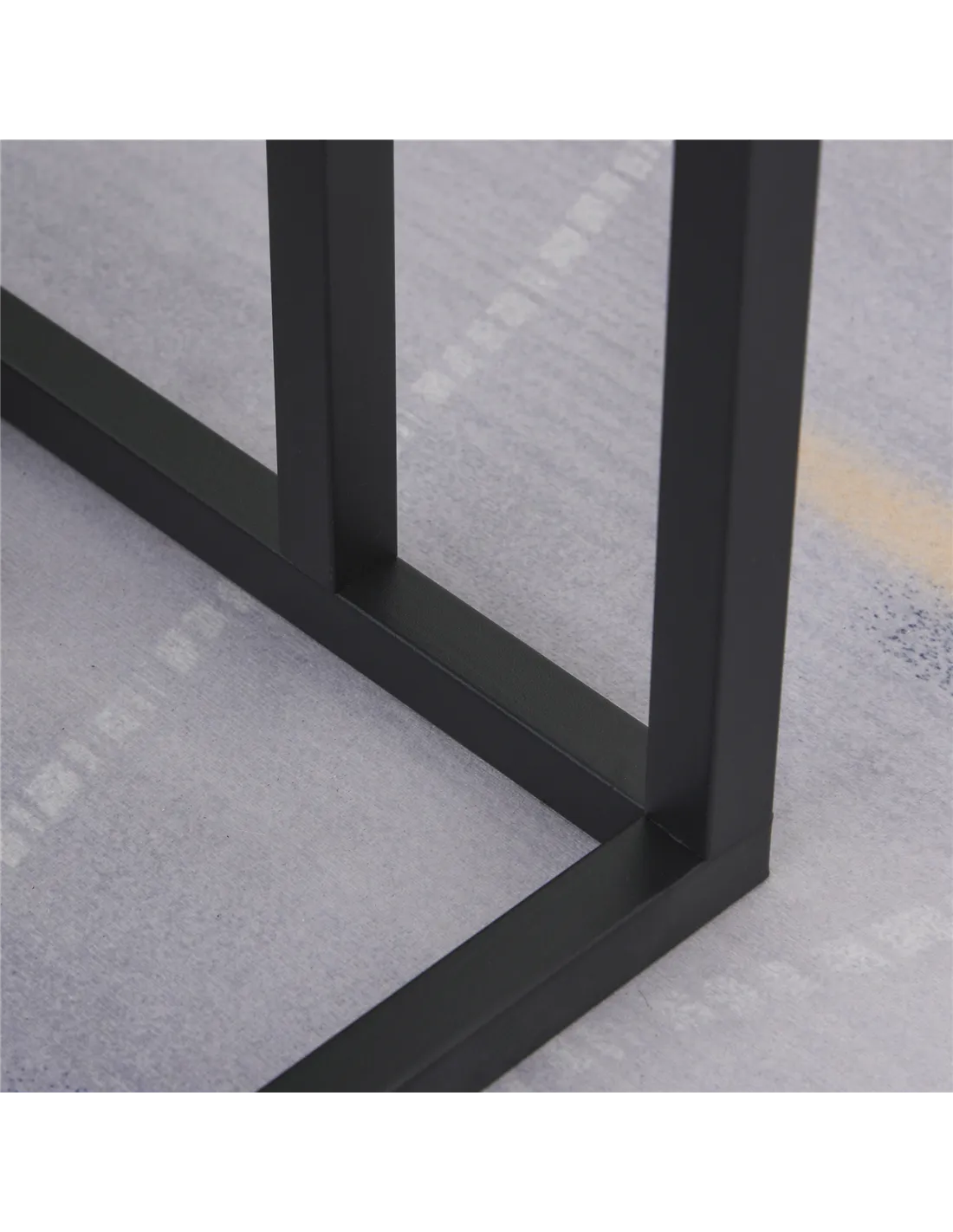 - Its sleek black marble-effect top and sturdy metal frame complement modern and minimalist interiors, adding a touch of sophistication.