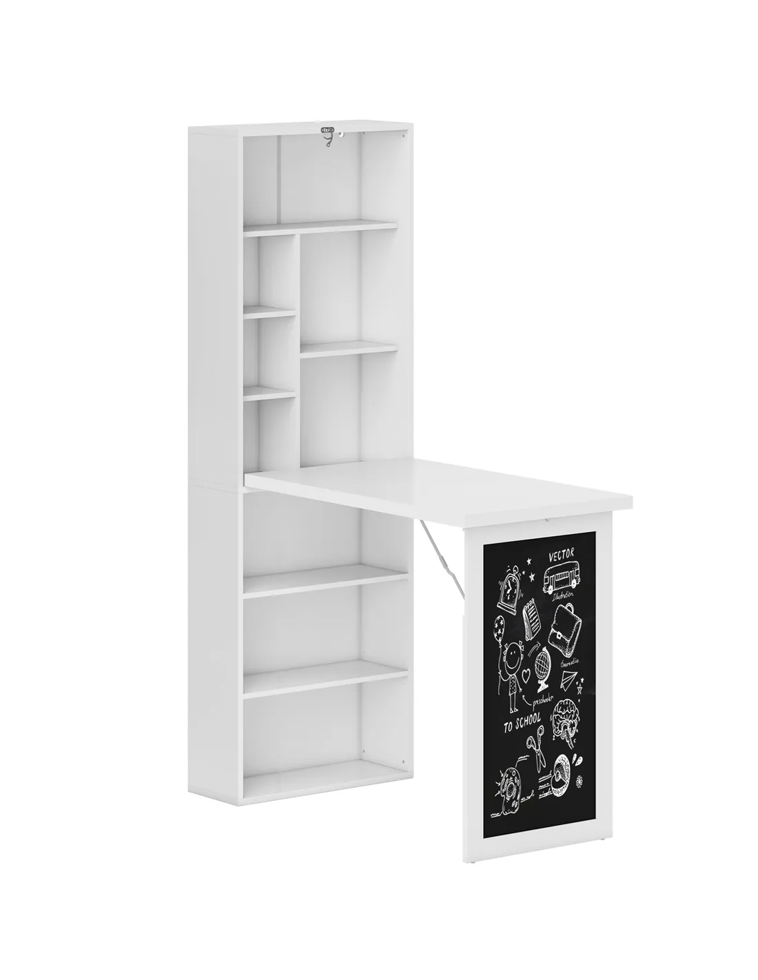 HOMCOM Wall Mounted Computer Desk, Folding Study Table with Black Board and Bookshelf, Multifunctional Floating Writing Desk for Home Office, White
