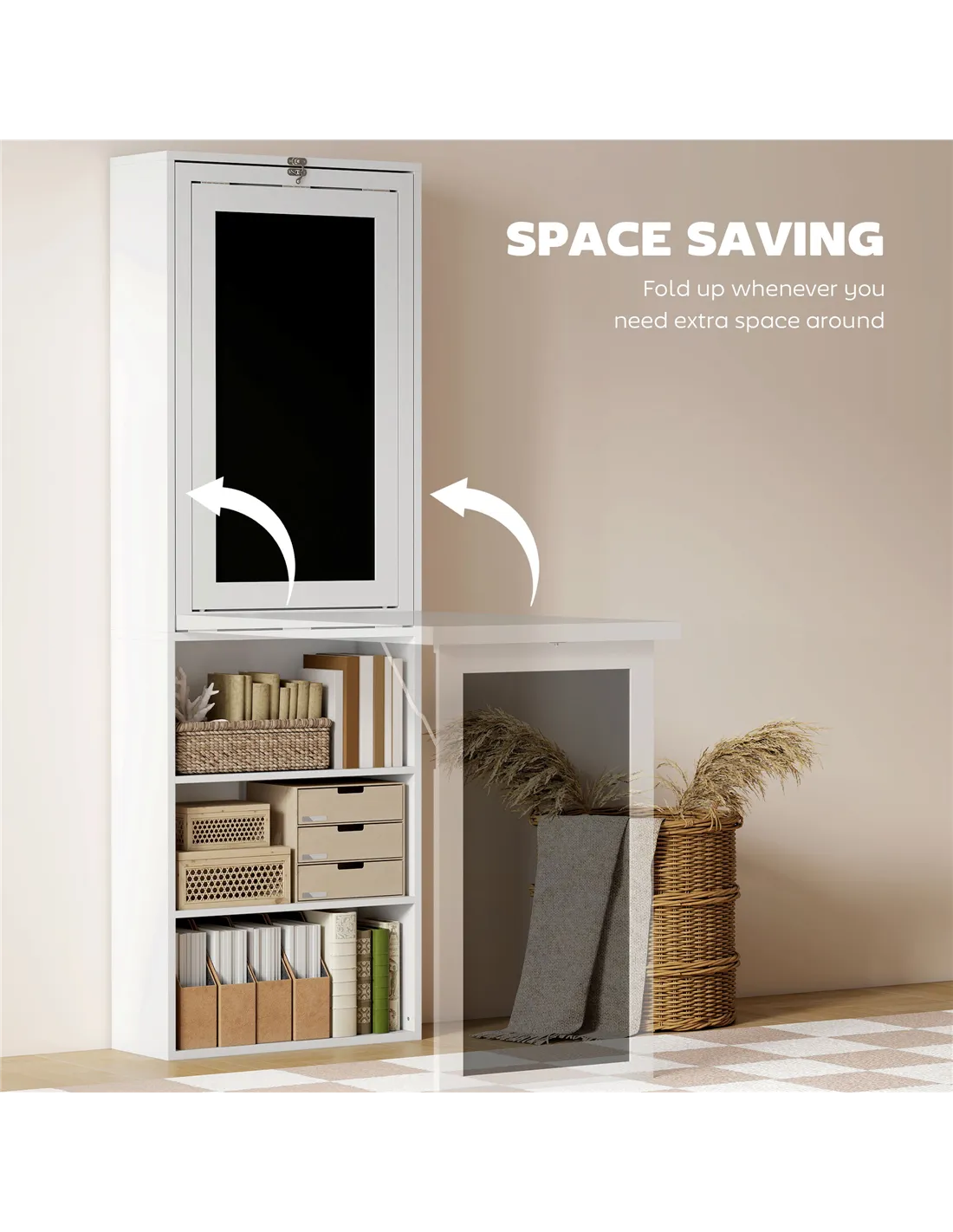 Transform your compact living area into a functional and stylish workspace with the HOMCOM fold-out PC desk. Perfect for small apartments or shared spaces, this desk features a clever design with a nine-shelf unit, central desk, and writing board. It maximizes every inch, keeping essentials organized and thoughts clear. Ideal for those who value efficiency and elegance, this desk seamlessly blends into any decor, offering a sophisticated solution for modern living without compromising on space.