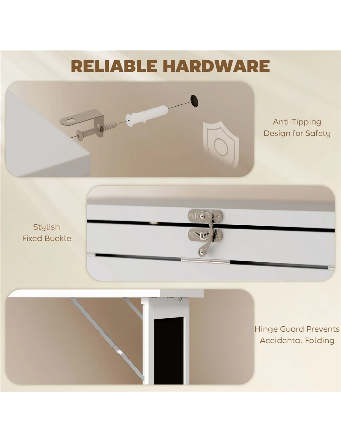 - Solid MDF structure, with metal hardware to reinforce strength