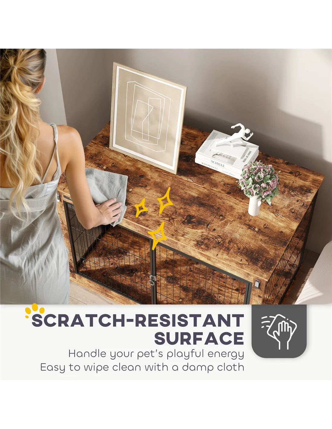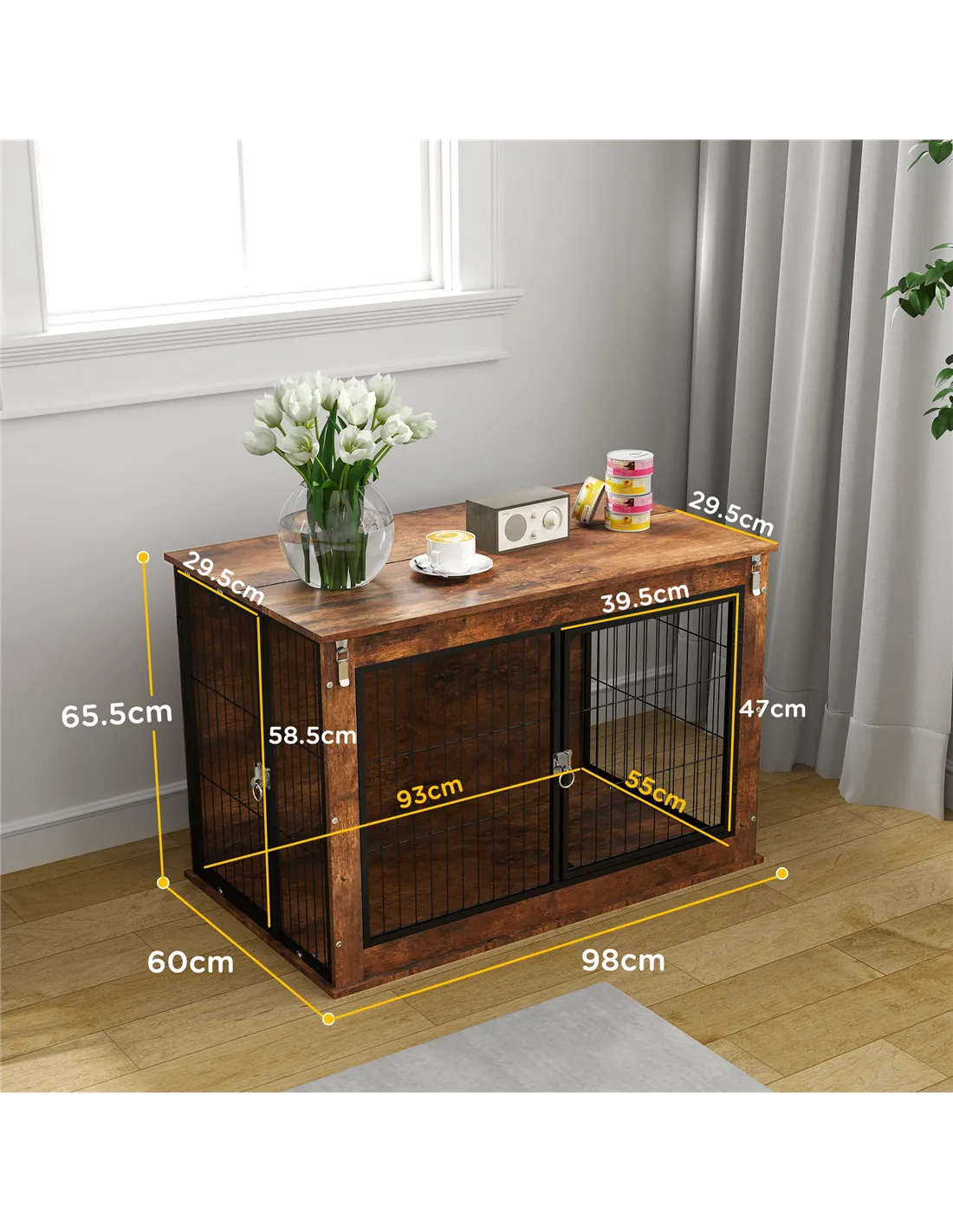 - Perfect for pet owners who want easy interaction with their dogs, thanks to the openable top and dual-door design, allowing convenient access for feeding, grooming, or cuddling.
