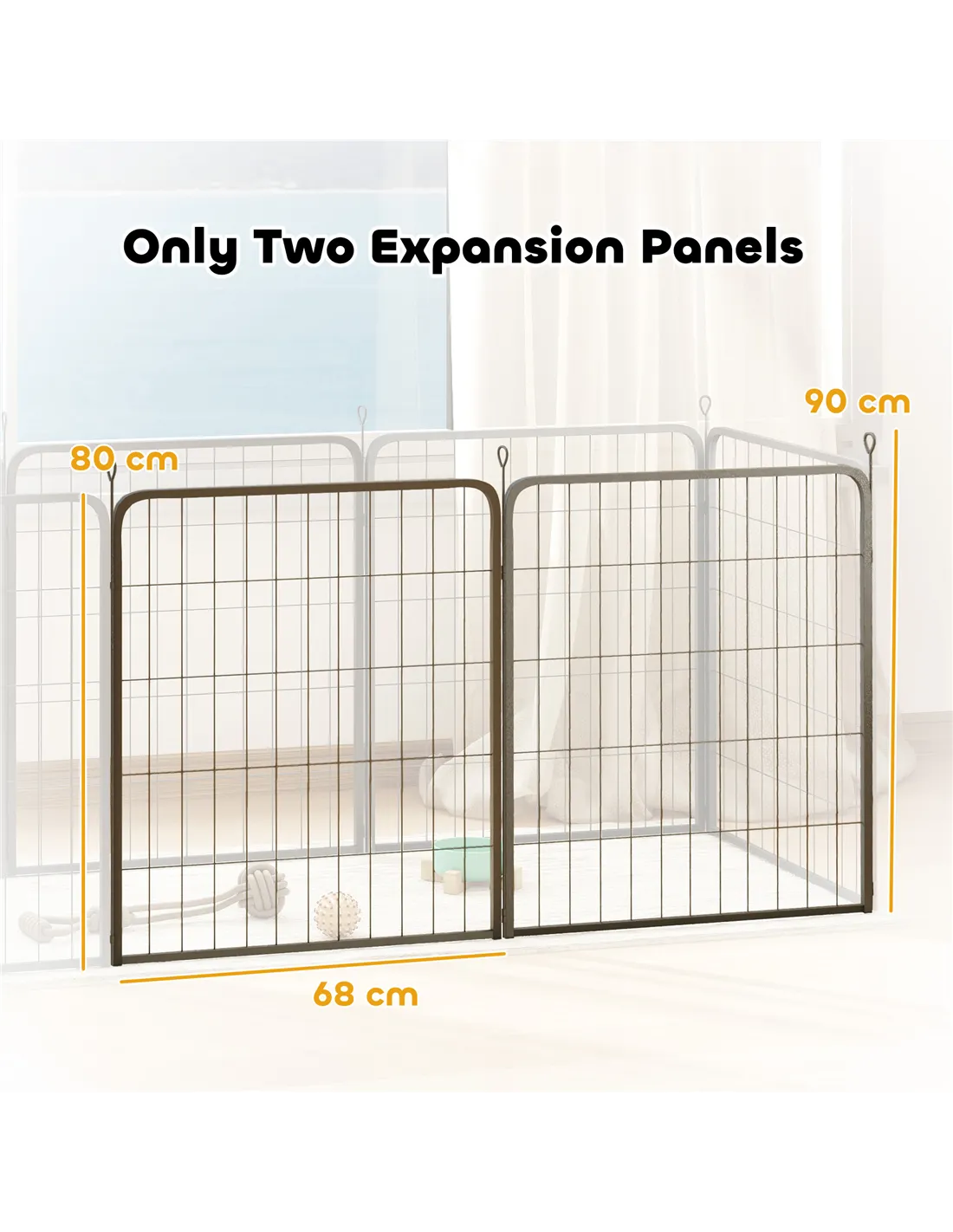 Add this two-piece PawHut expansion pack to your existing pet playpen, increasing their space for more roaming, playing and relaxing. It's made of solid steel, anchored with three ground stakes, providing a stable and secure setup that keeps medium dogs safe, indoors or outdoors. When not in use, simply fold it flat for compact storage, ready to be used again.