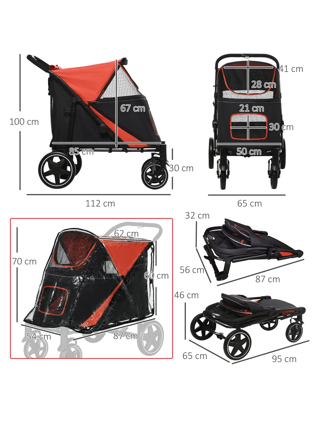 - Rain cover dimensions: 87L x 54W x 70Hcm