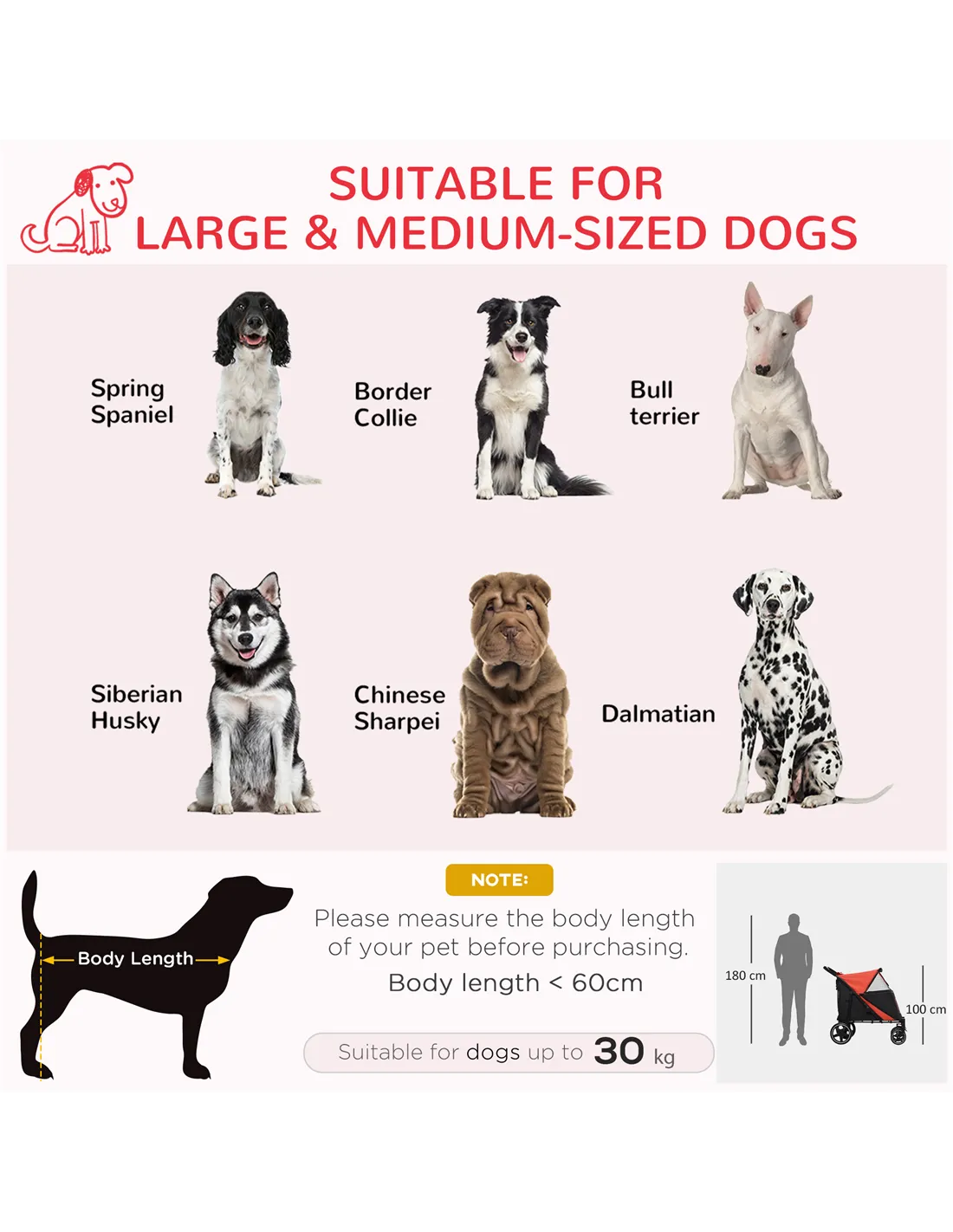 - Suitable for large and medium dogs, less than 60cm in length and 30kg