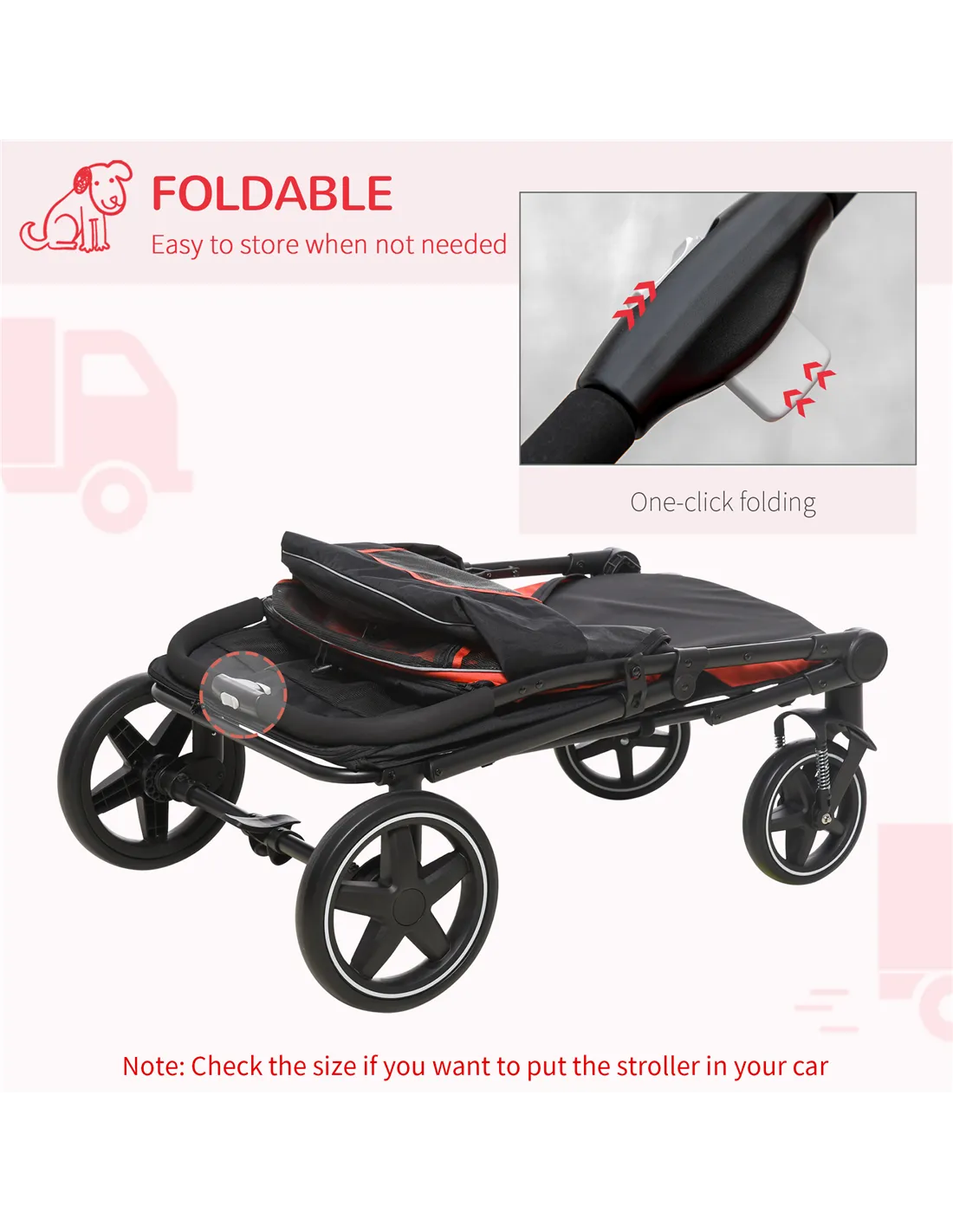 PawHut One-Click Foldable Pet Travel Stroller with Rain Cover, Cat Dog Pushchair with Universal Front Wheels, Shock Absorber, Storage Bags, Mesh Window, Safety Leash for Large and Medium Dogs (Red)