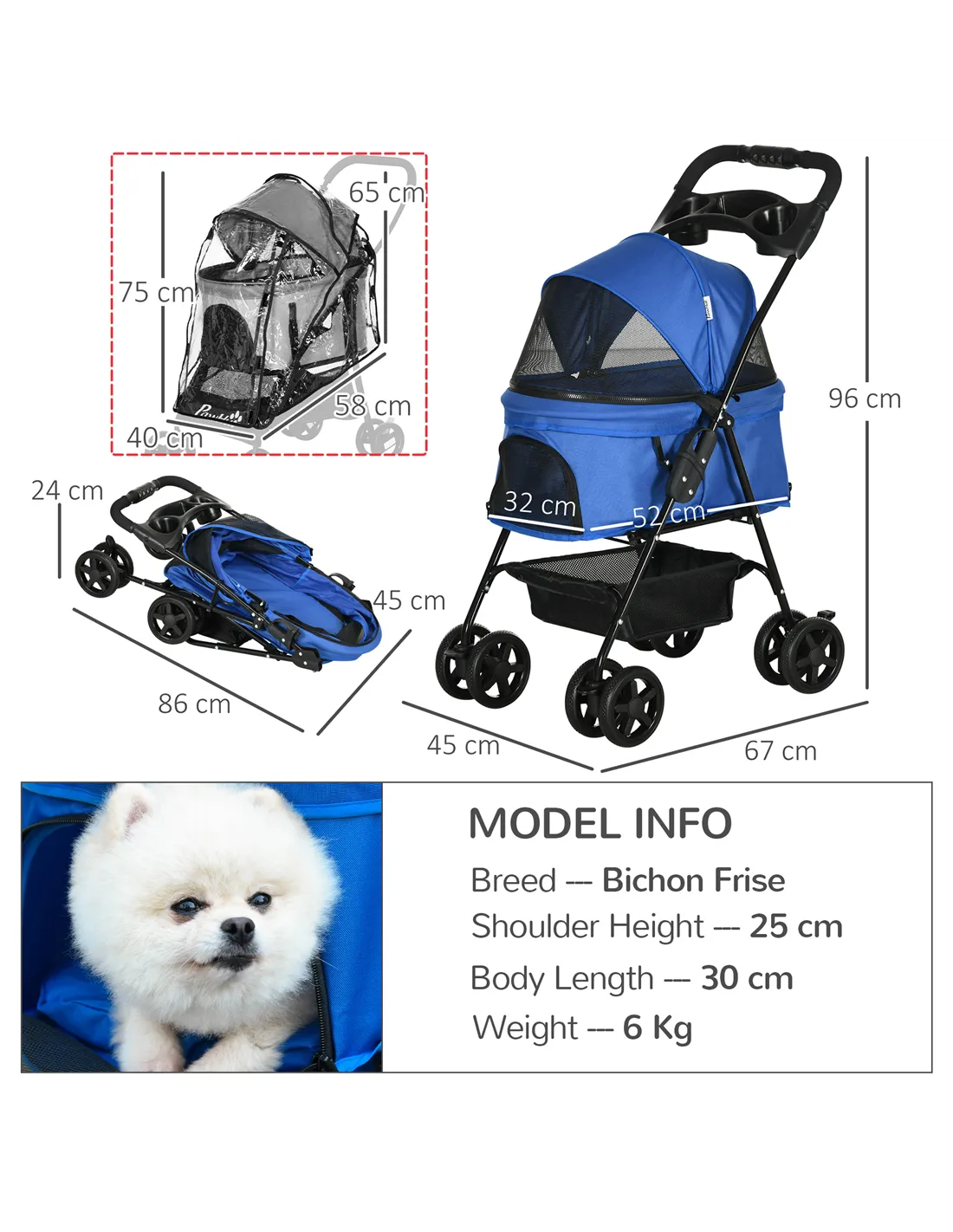 - Perfect for daily walks in the park or around your neighbourhood, providing a comfortable ride for small or elderly dogs.