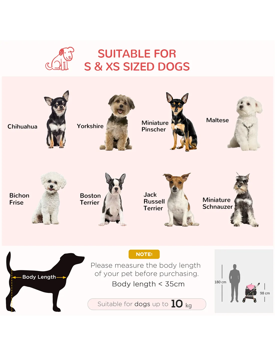 With this PawHut dog stroller for small dogs, you can take pets out with little fuss. They'll sit in a big buggy as the wind flows through the netted windows to keep them cool. And the rain cover prevents them away from the rain, wind and snow, ensuring pets have a comfortable and familiar space wherever they are. When done, fold the cat stroller for simple storage. Made with a steel frame, it can hold up to 10kg – the perfect buggy for extra small and small dogs.