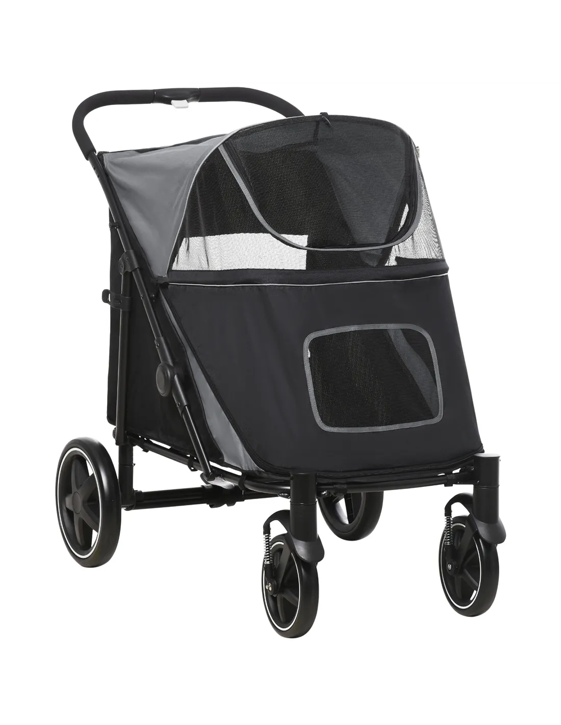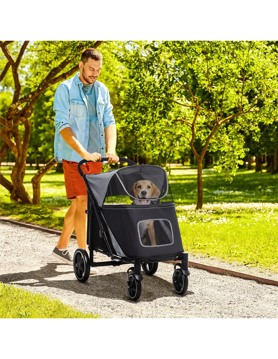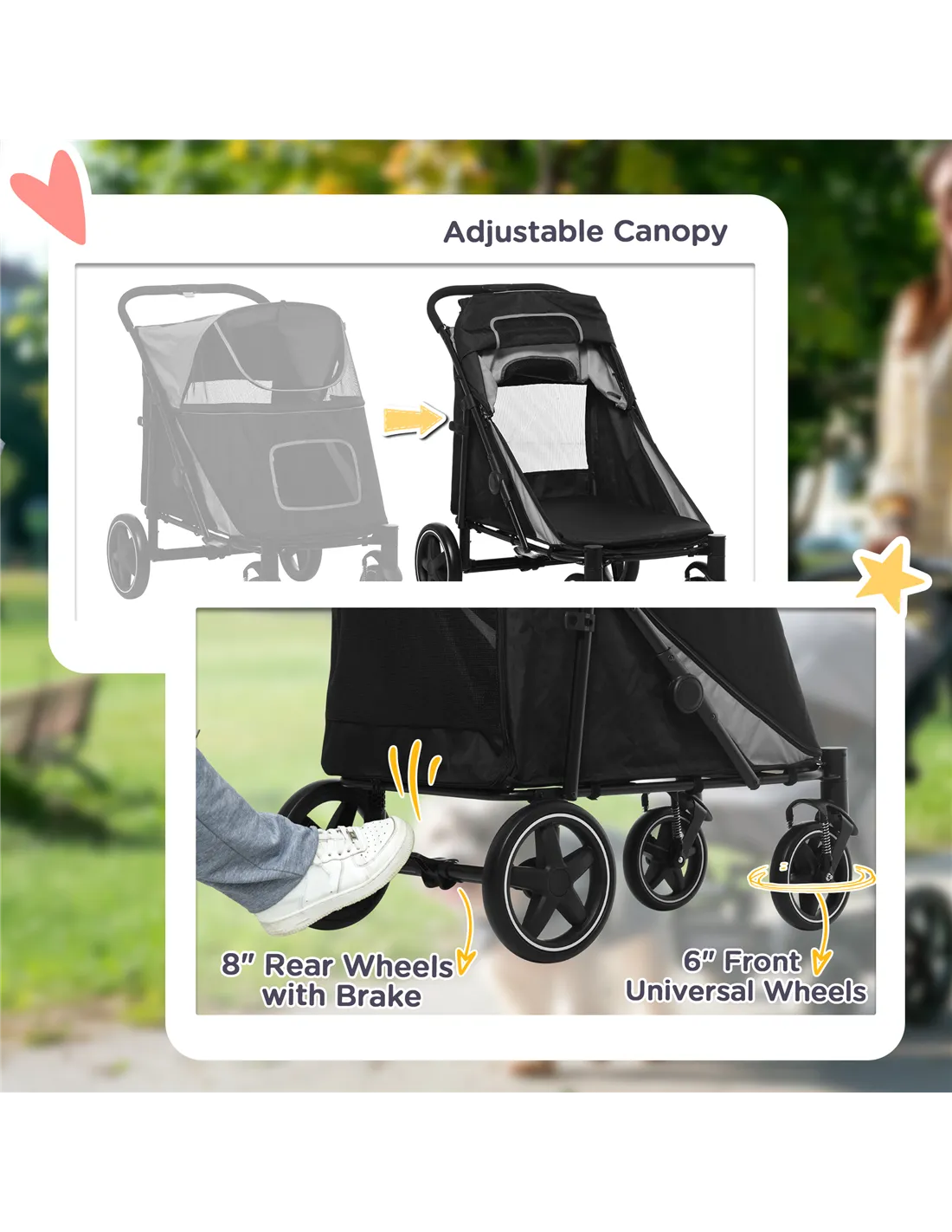 PawHut Foldable Pet Stroller, with Universal Wheels, Shock Absorber, for Medium and Large Dogs - Black